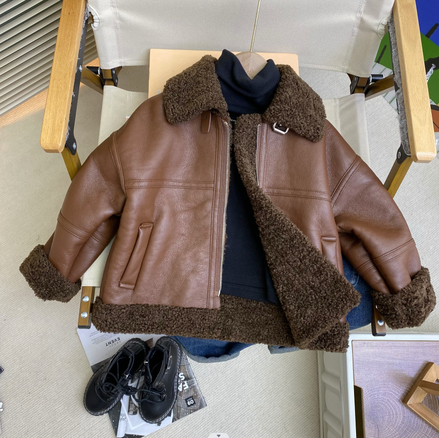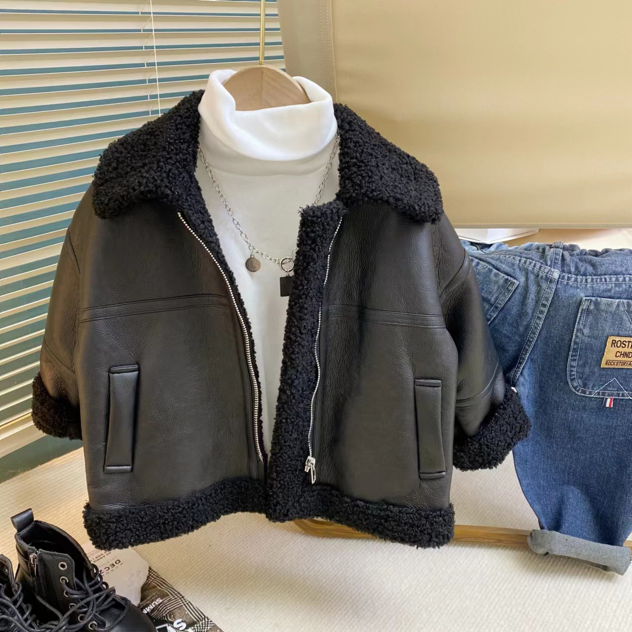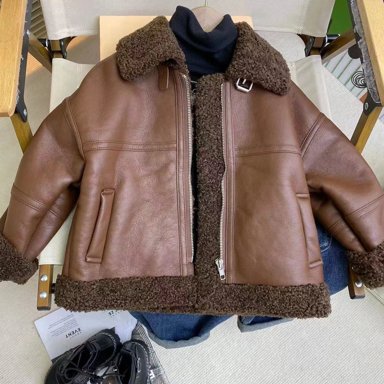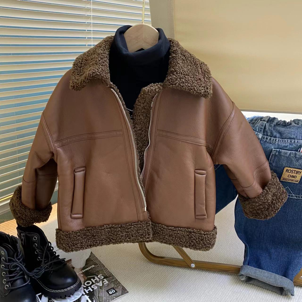 남아 여아 가죽 자켓 2025 가을 겨울 신상 아동 캐주얼 양털 자켓 가죽과 모피 일체형 해외 직구