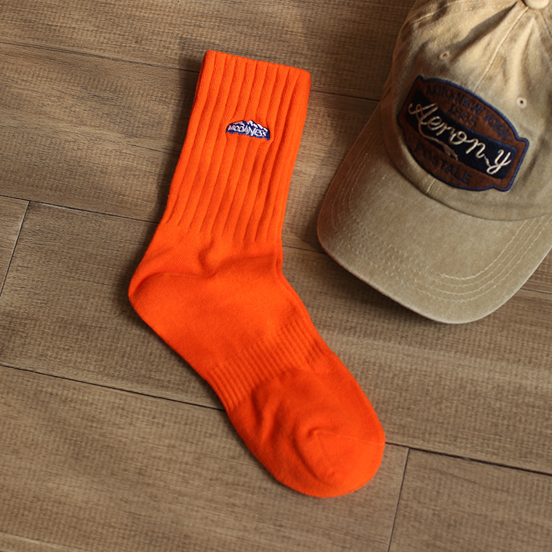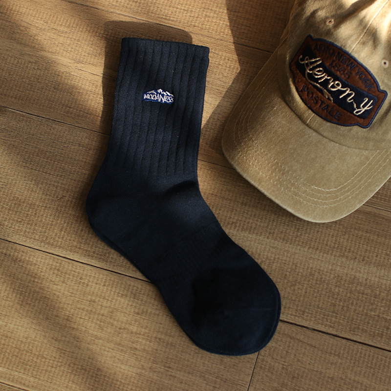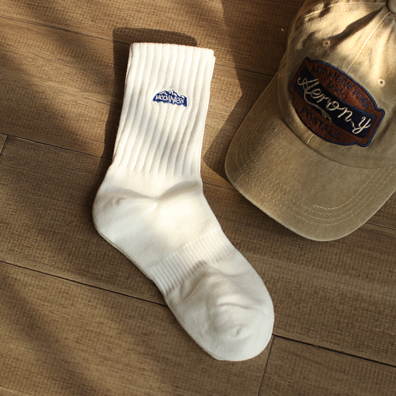 인간 양말 남성 가을 트렌디 한 스포츠 하이탑 롱 농구 양말에 새로운 자수 스노우 마운틴 코튼 중간 길이 양말