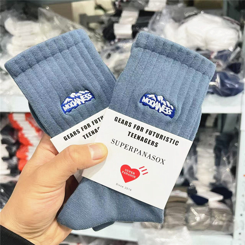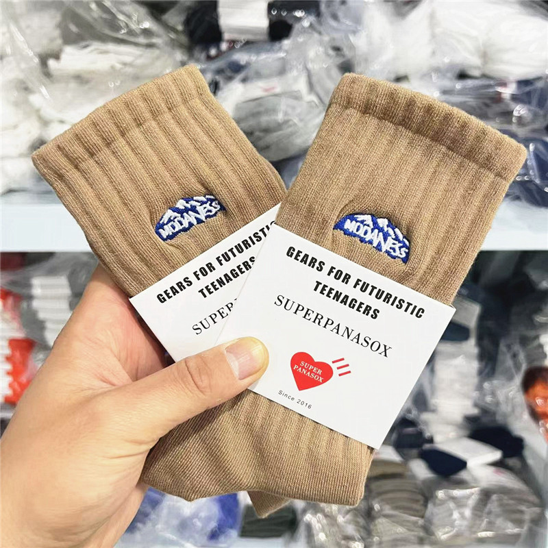 Human袜子男秋季新品刺绣雪山纯棉中筒袜ins潮流运动高帮长篮球袜