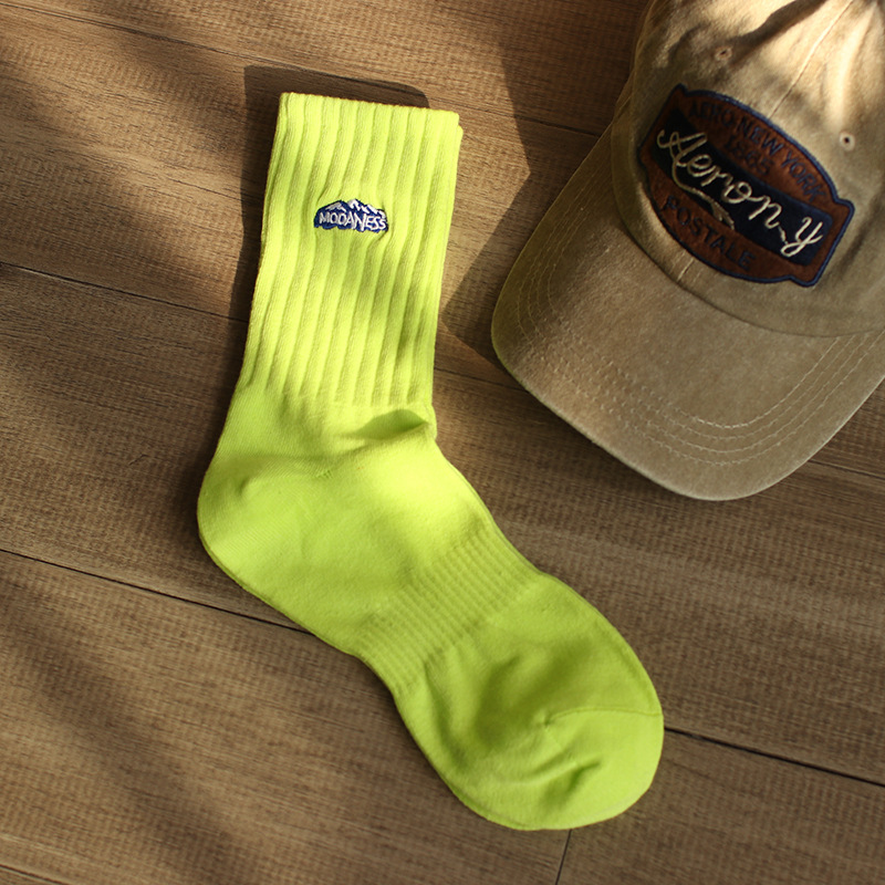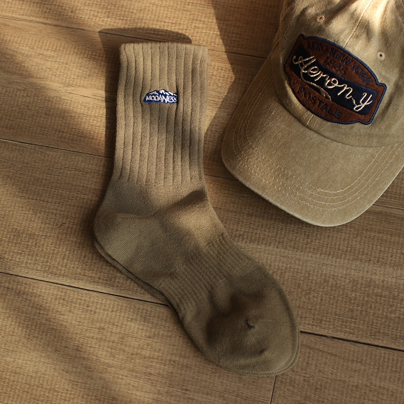 인간 양말 남성 가을 트렌디 한 스포츠 하이탑 롱 농구 양말에 새로운 자수 스노우 마운틴 코튼 중간 길이 양말스토어 가기