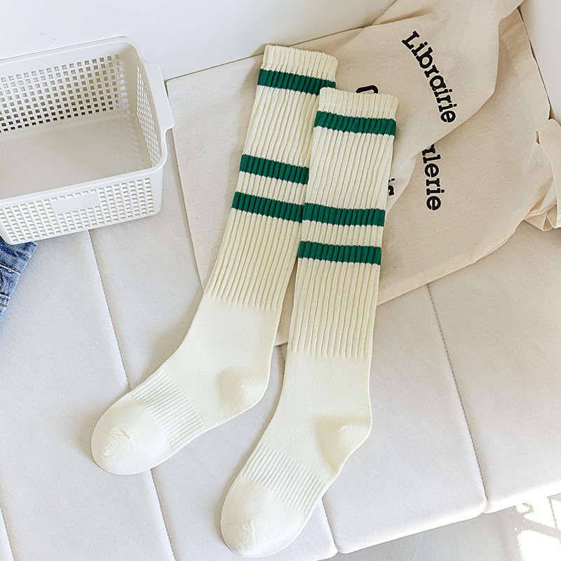 • WH82 줄무늬 송아지 양말 흰색 녹색 줄무늬