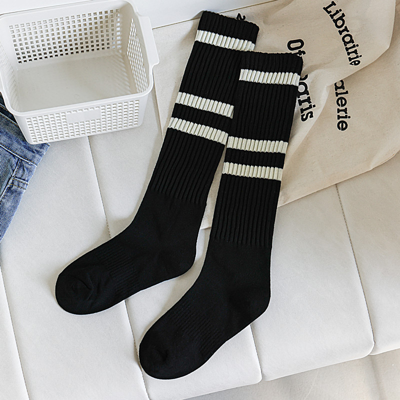가을과 겨울 프레피 스타일 코튼 스트라이프 송아지 양말 여성 한국식 무릎 길이 스포츠 캐주얼 화이트 컬러 스트라이프 더미 스타킹 조수스토어 가기