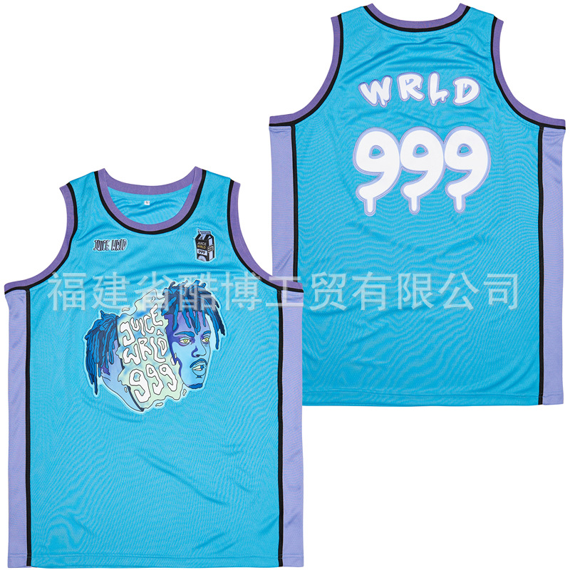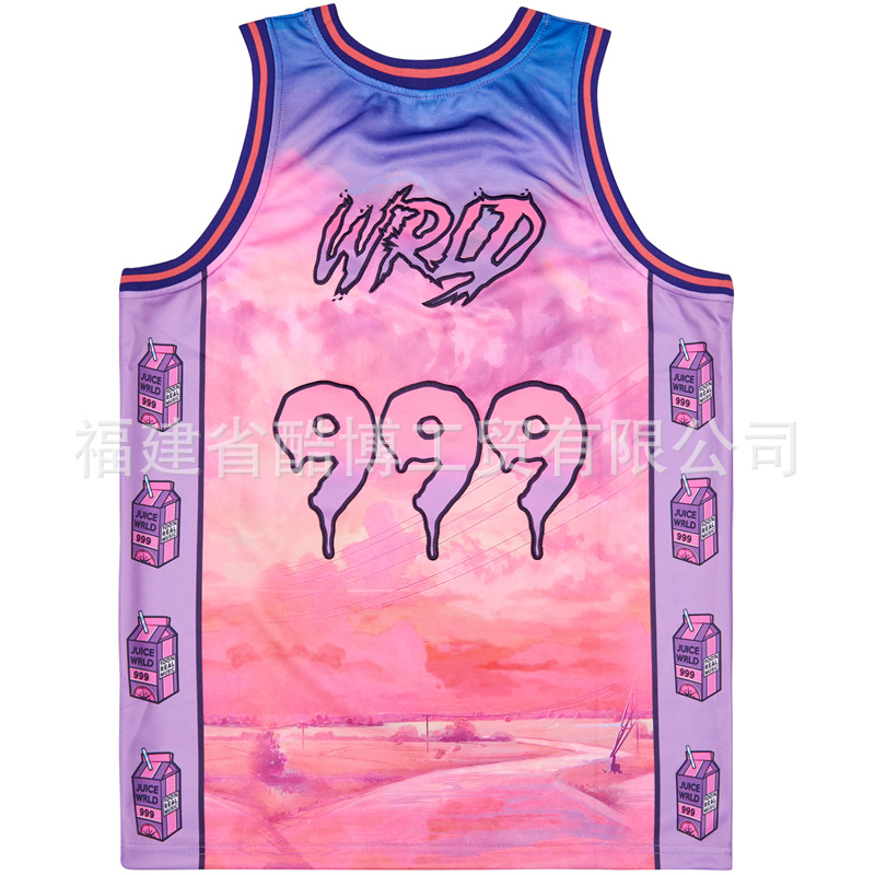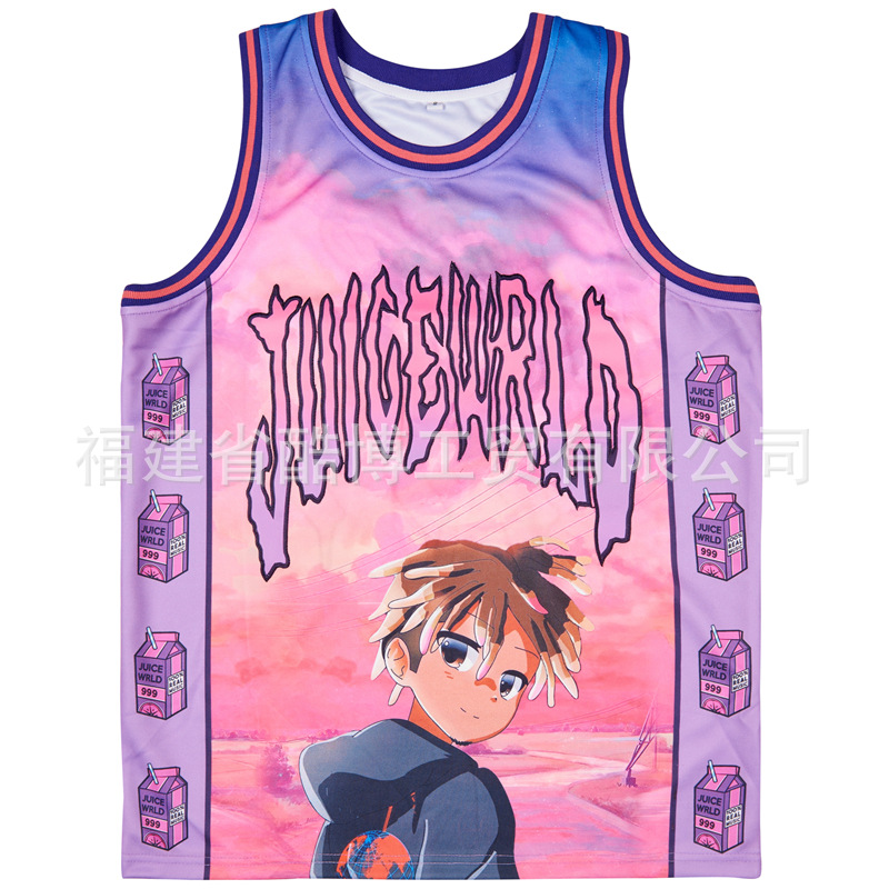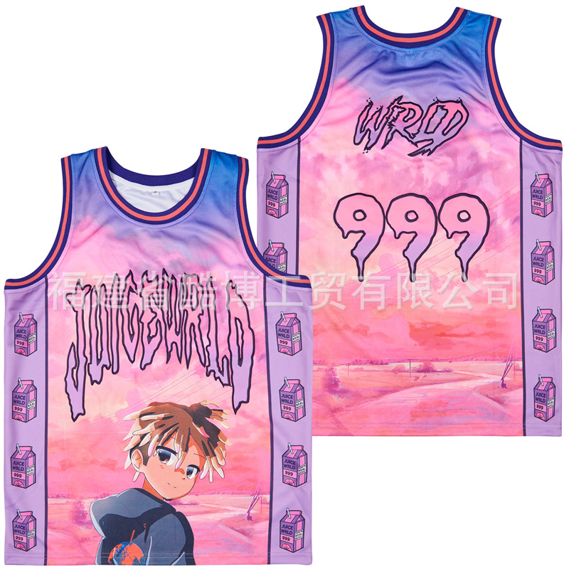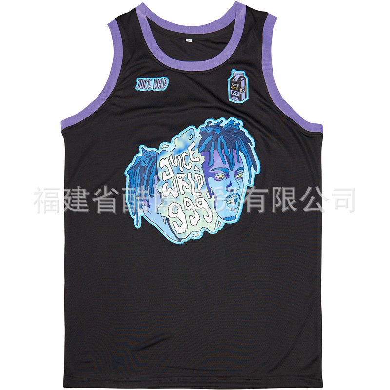 미국 농구 저지 그라디언트 자수 999 # JUICE WRLD 남자 스포츠 훈련 조끼 라운드 넥 탑