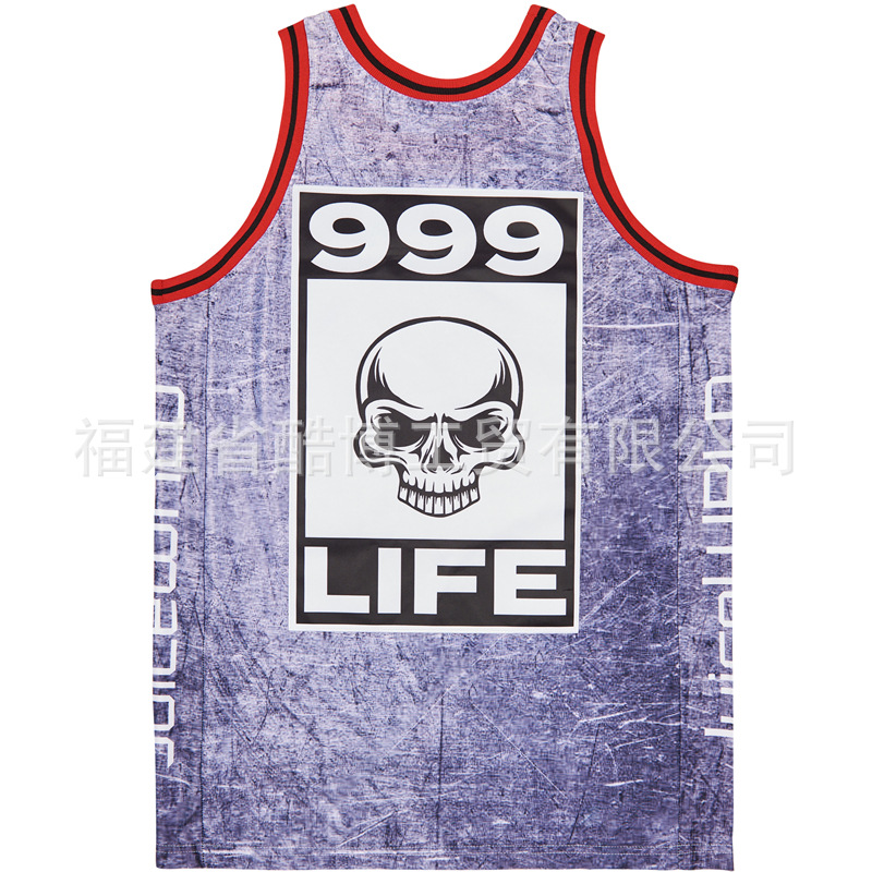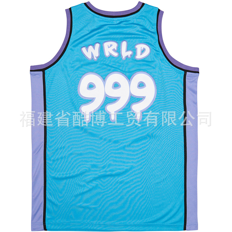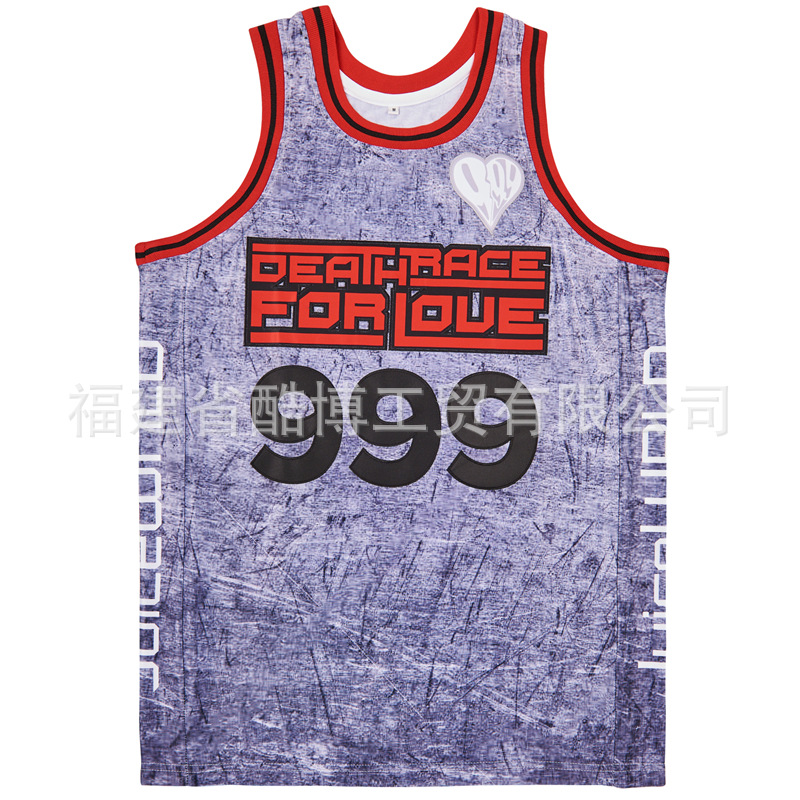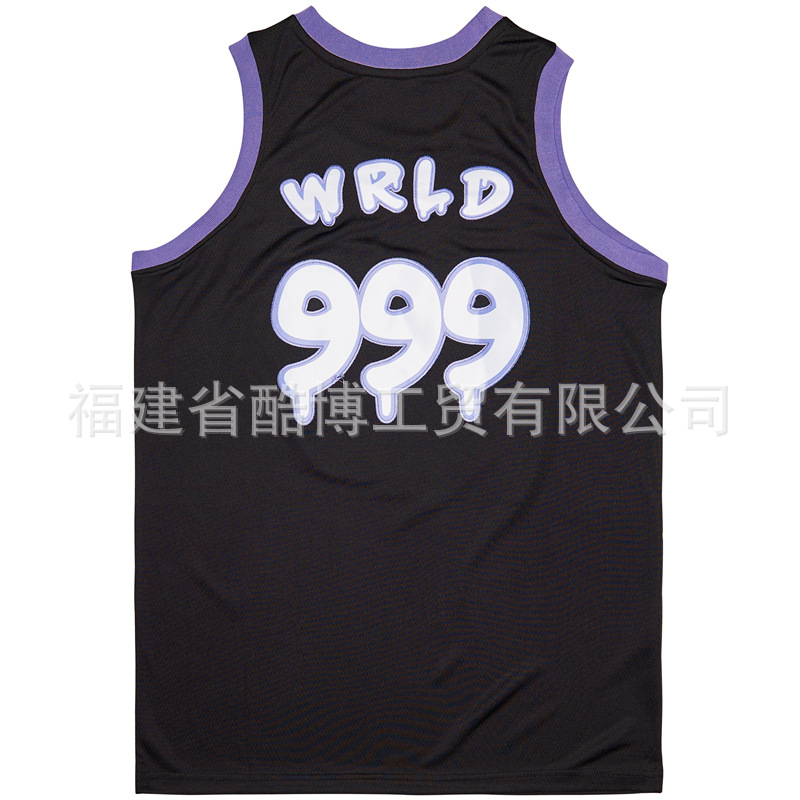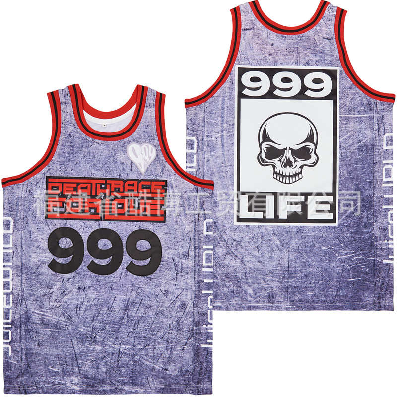 미국 농구 저지 그라디언트 자수 999 # JUICE WRLD 남자 스포츠 훈련 조끼 라운드 넥 탑