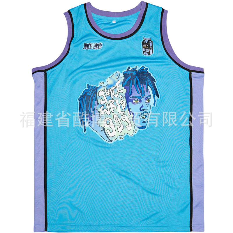 미국 농구 저지 그라디언트 자수 999 # JUICE WRLD 남자 스포츠 훈련 조끼 라운드 넥 탑스토어 가기