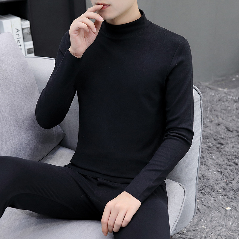 남자 가을과 겨울 양면 벨벳 열 속옷 세트 반 터틀넥 기모 두껍게 매끄럽고 긴 존스스토어 가기