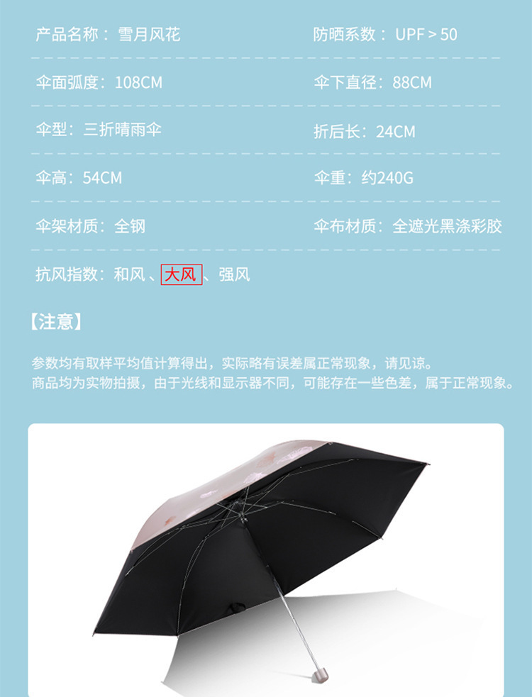 25년 천국 307 눈과 달 바람과 꽃 경량 연필 우산 70% off 우산 여성용 자외선 차단제, 비 및 자외선 차단 파라솔스토어 가기