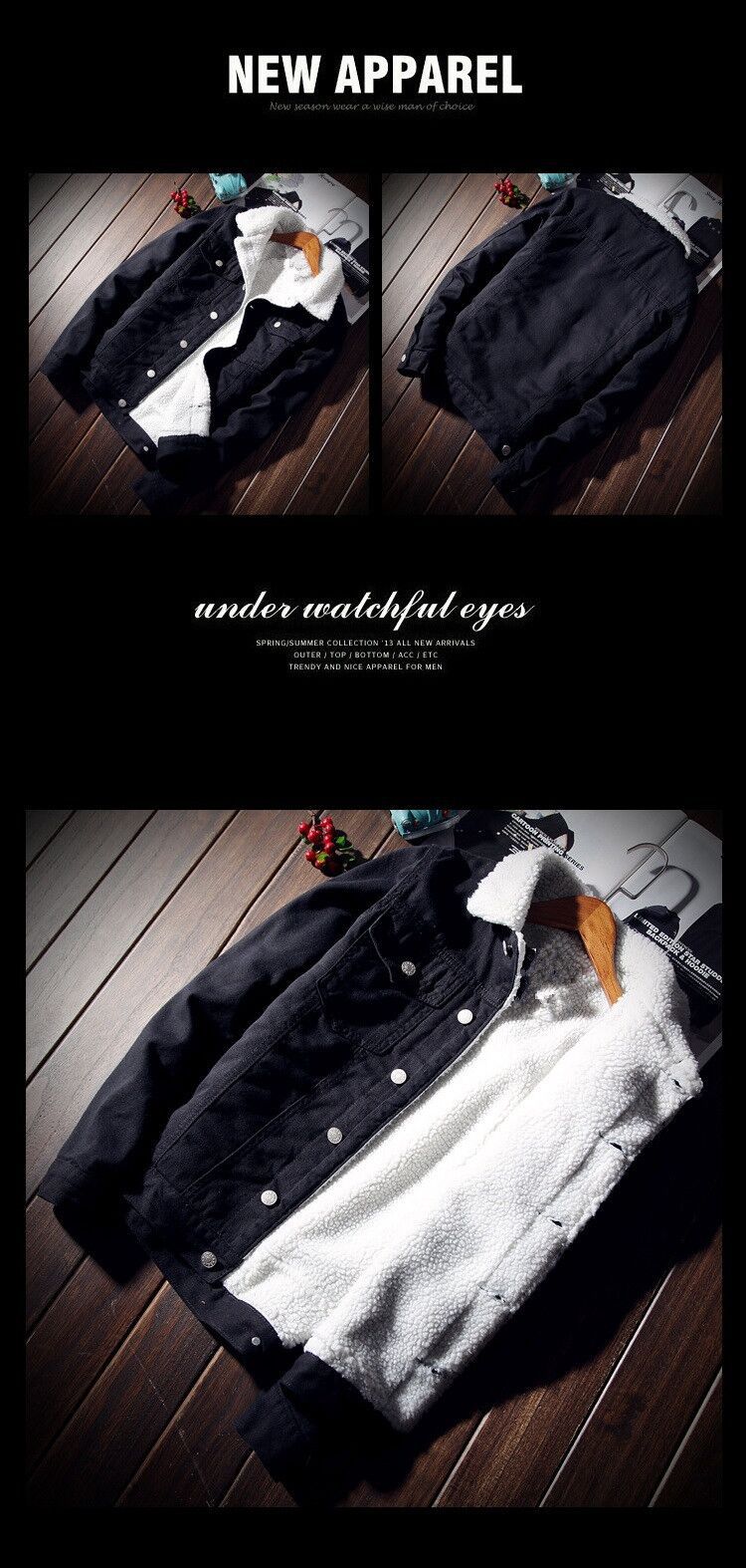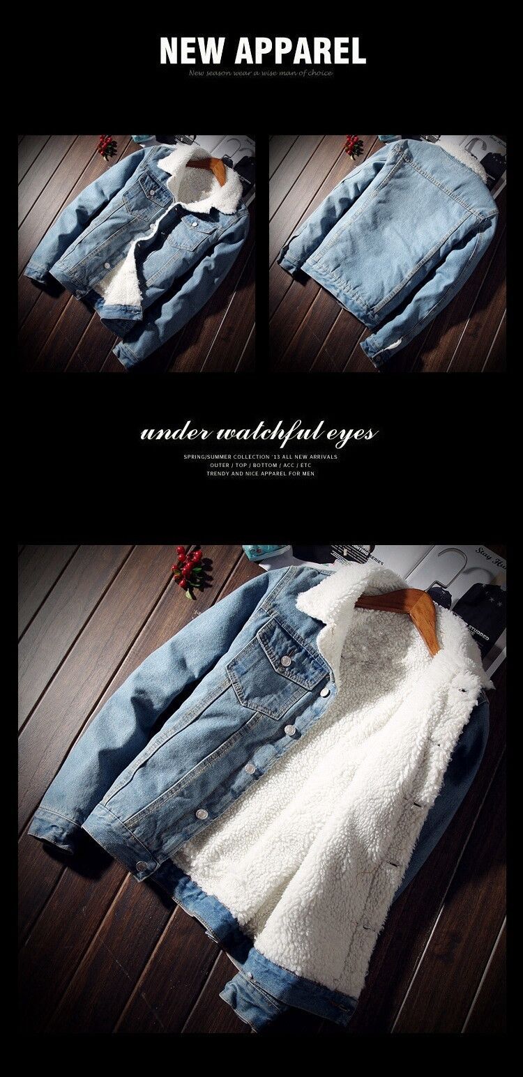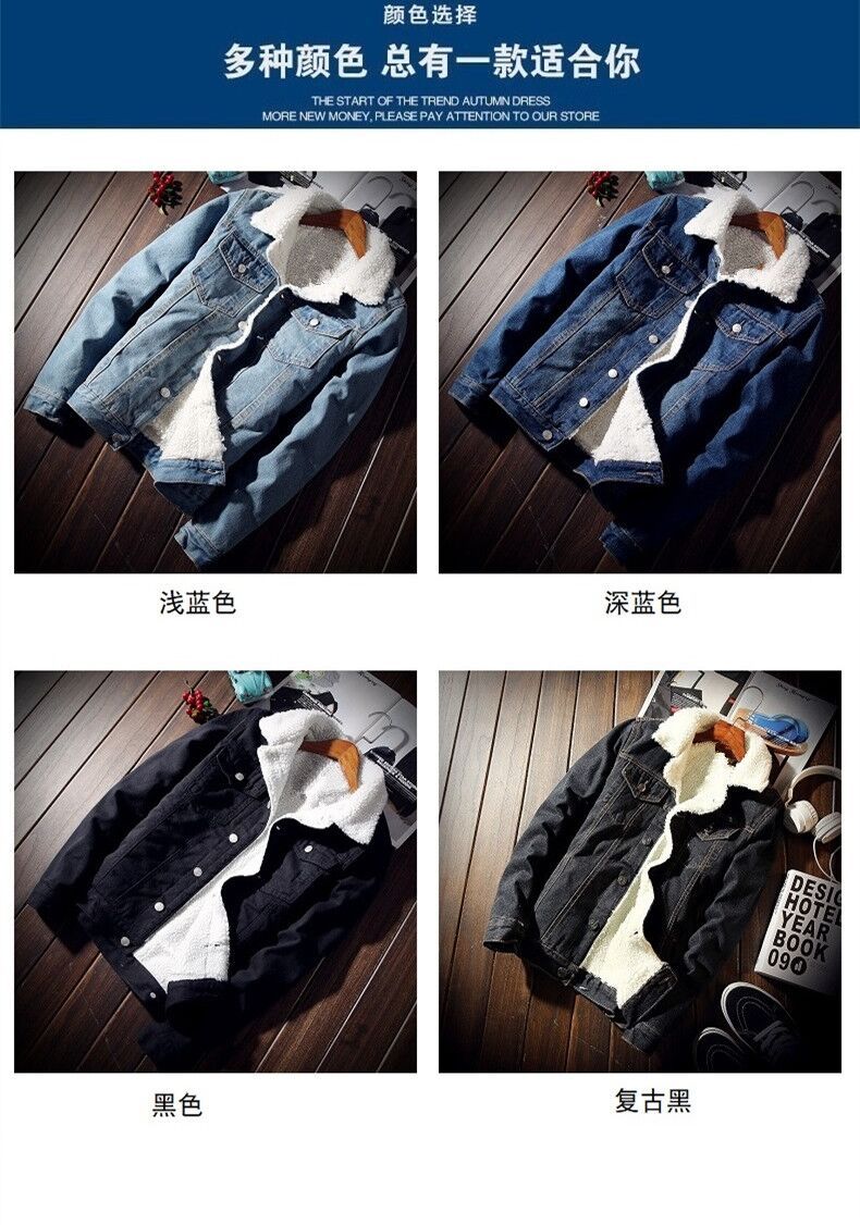 겨울 신상품 기모 데님 재킷 남자의 한국 스타일 트렌디 느슨한 양고기 울 면 코트 커플 코트 학생 면 코트