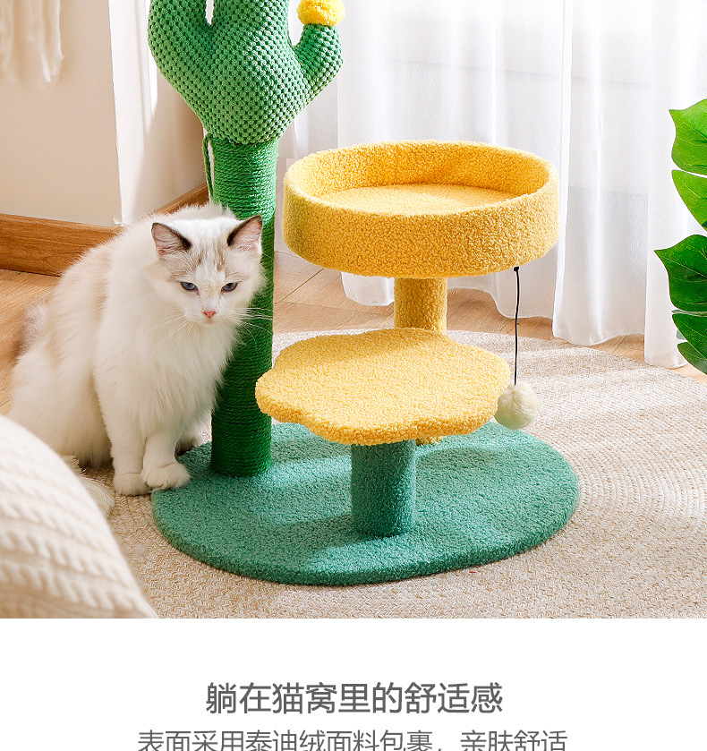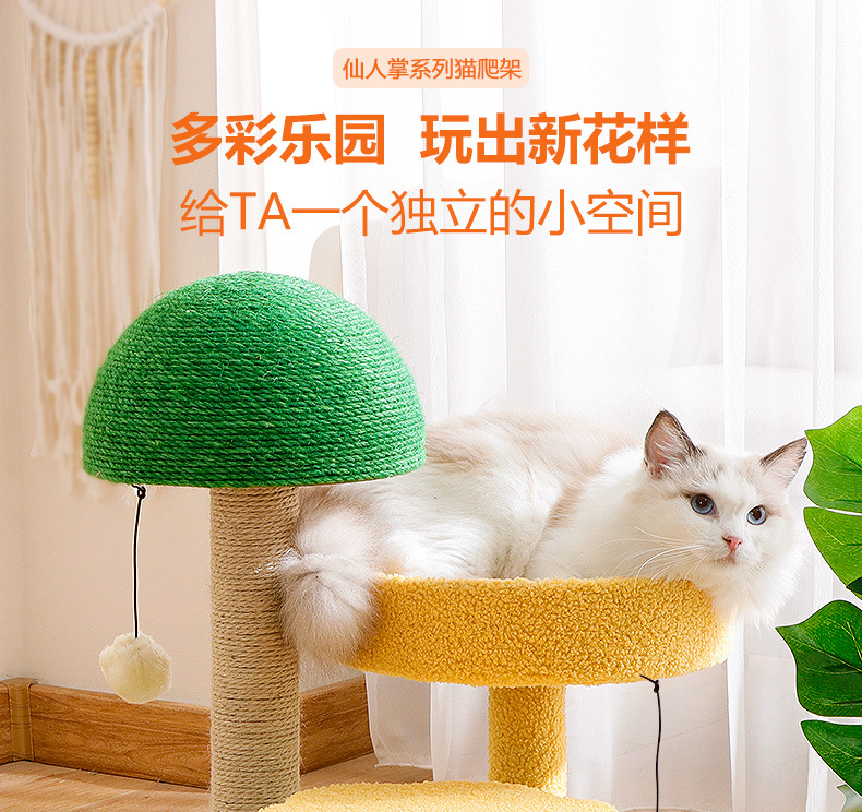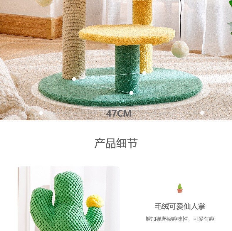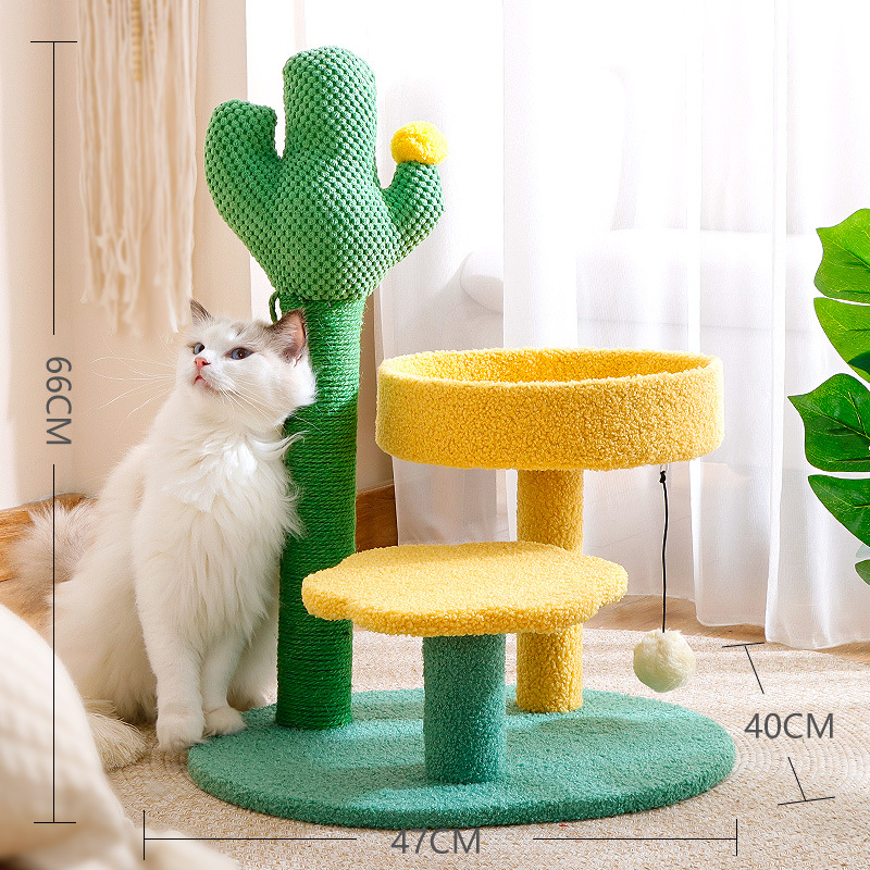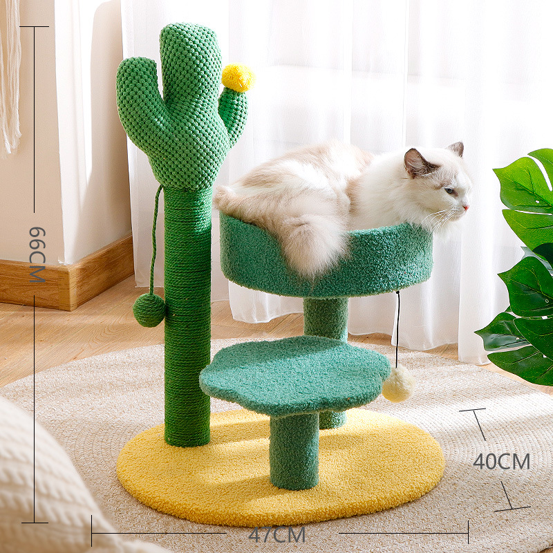 크로스보더 고양이 타워 선인장 모양 고양이 클라이밍 스탠드, 수직형 사자수 기둥, 고양이 점프 플랫폼, 고양이 집 포함, 공간 절약형 반려동물 용품스토어 가기