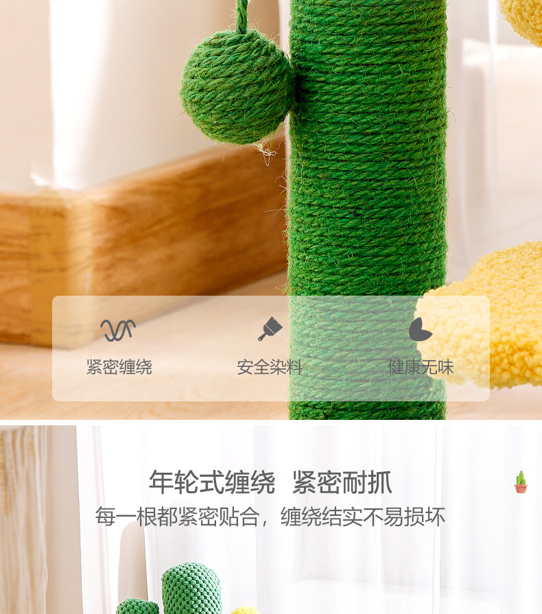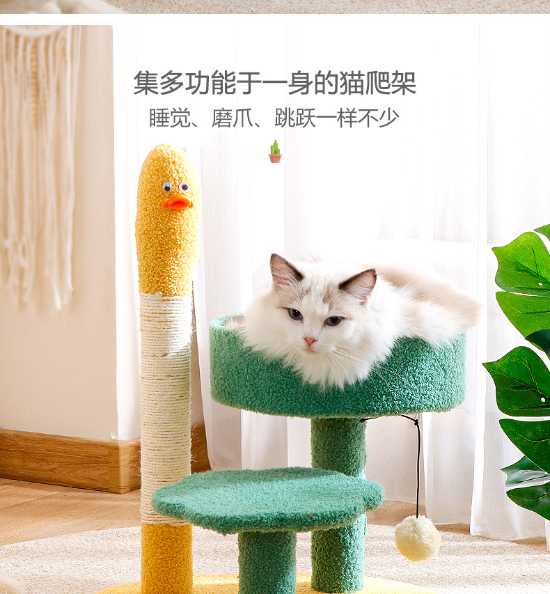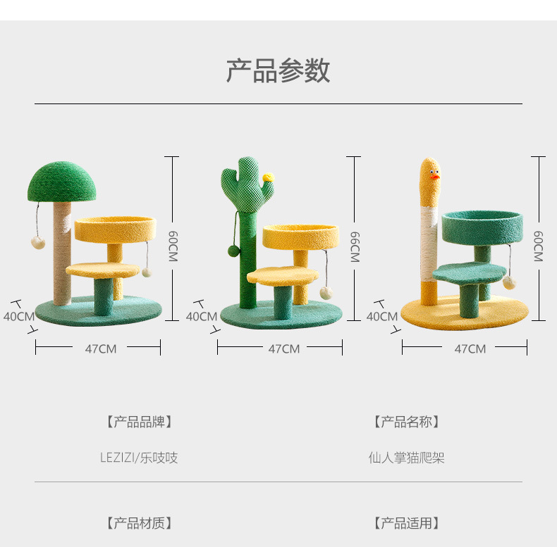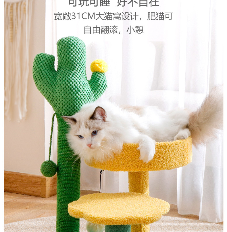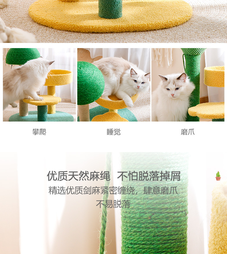 크로스보더 고양이 타워 선인장 모양 고양이 클라이밍 스탠드, 수직형 사자수 기둥, 고양이 점프 플랫폼, 고양이 집 포함, 공간 절약형 반려동물 용품스토어 가기
