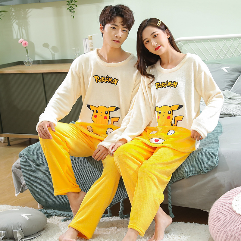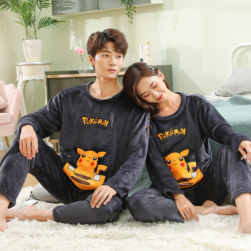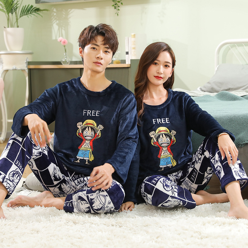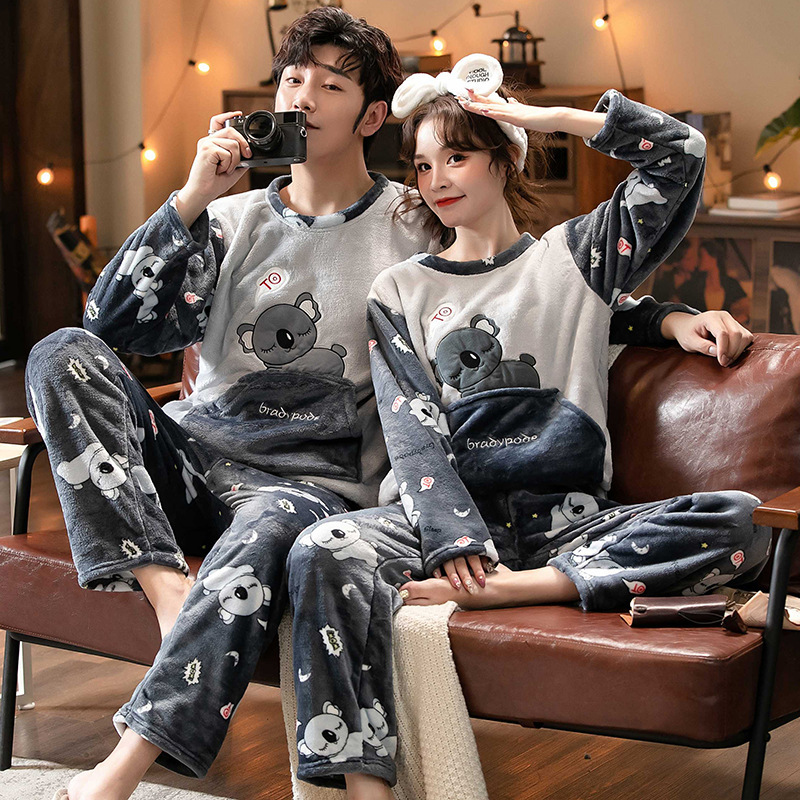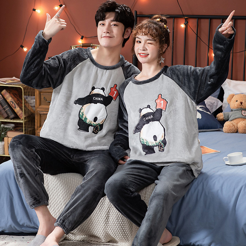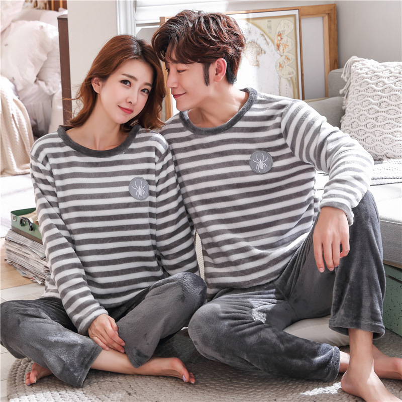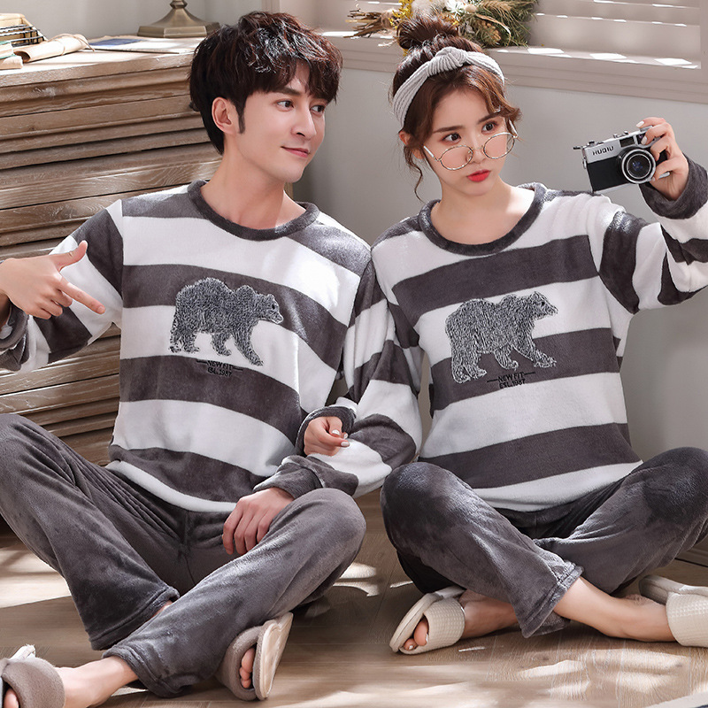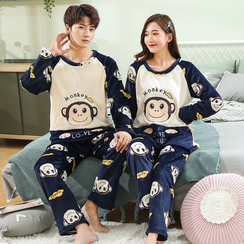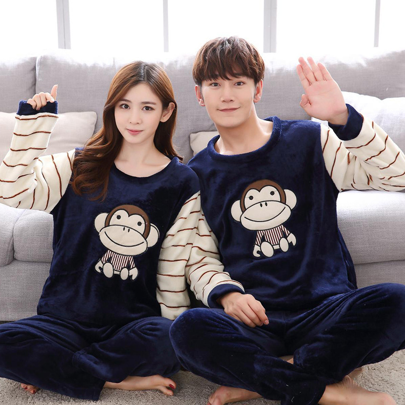 산호 벨벳 커플의 플러스 사이즈 잠옷 여자의 남자의 가을과 겨울 기모 두꺼운 플란넬 가정 옷 세트 연예인 라이브 방송스토어 가기