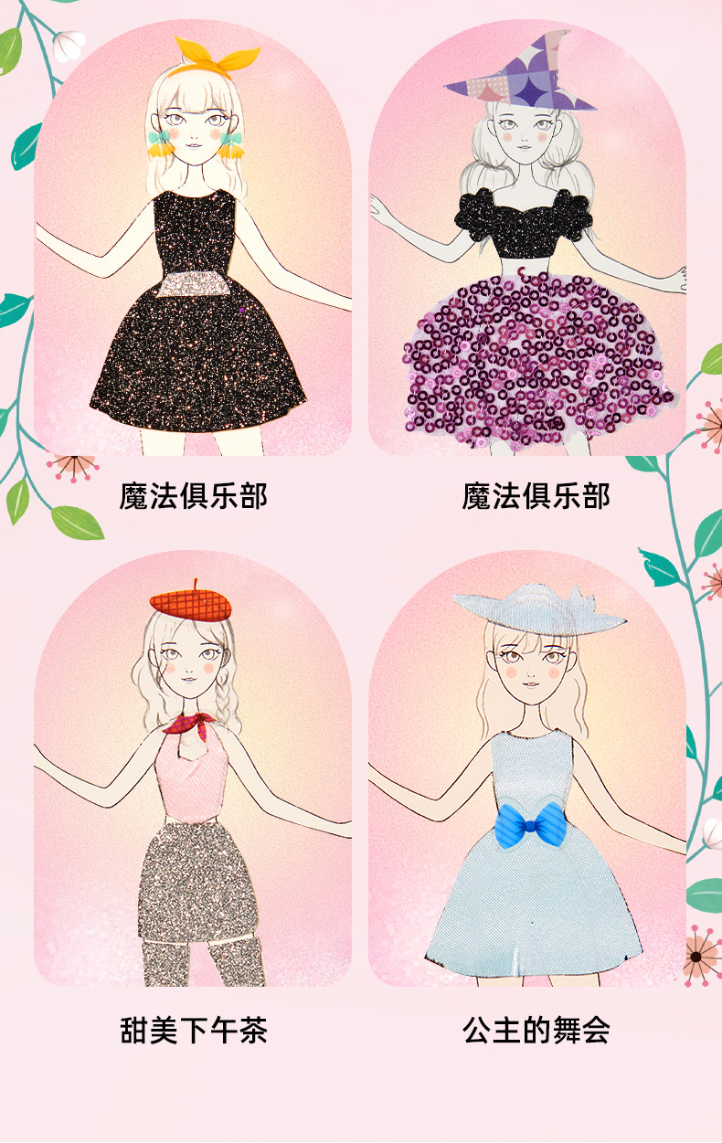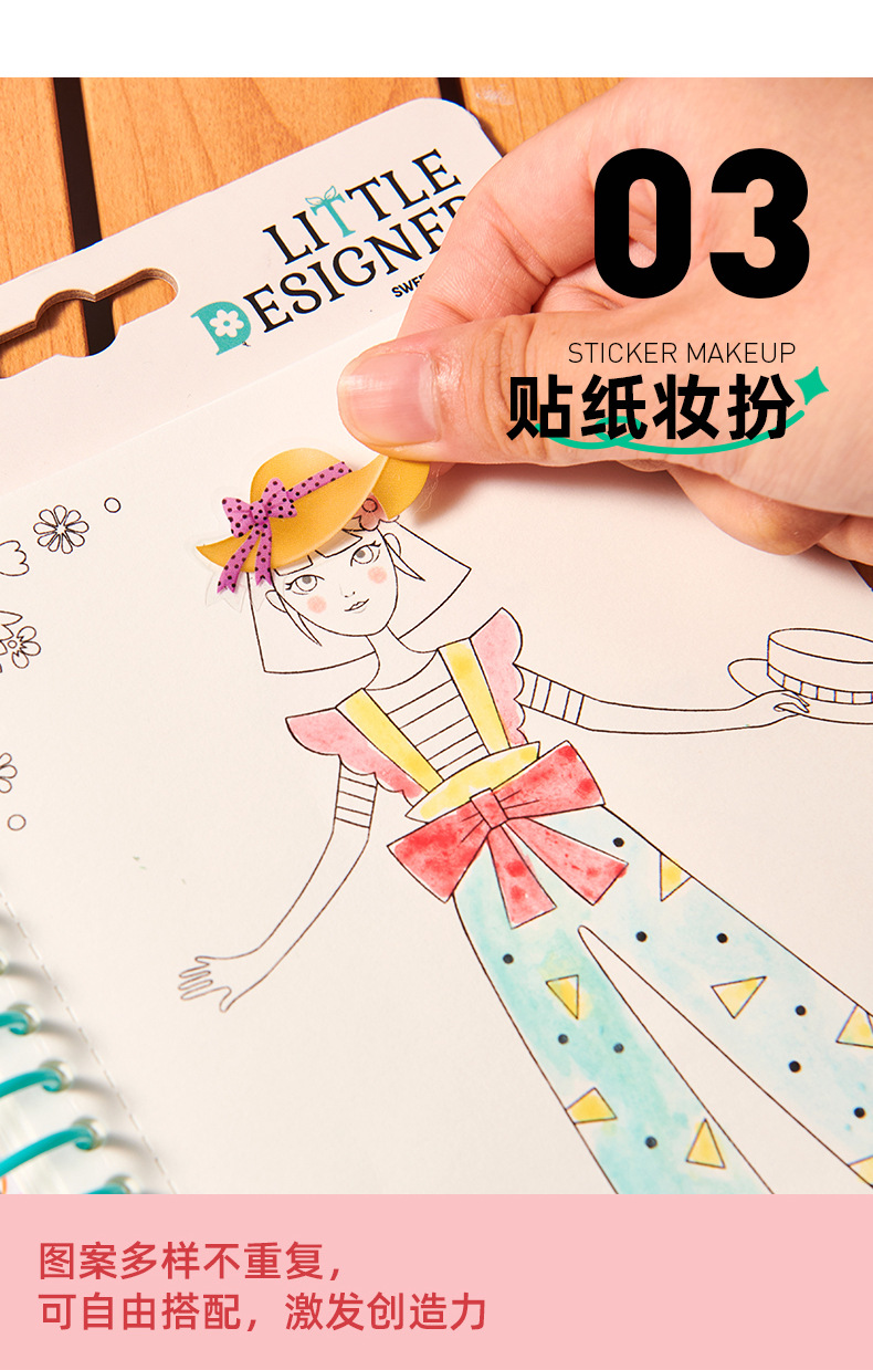 사슴 공주 원피스 업 스티커 책 꿈꾸는 손으로 그린 어린이 포커 그림 수제 DIY 어린 소녀 스티커 그림 장난감