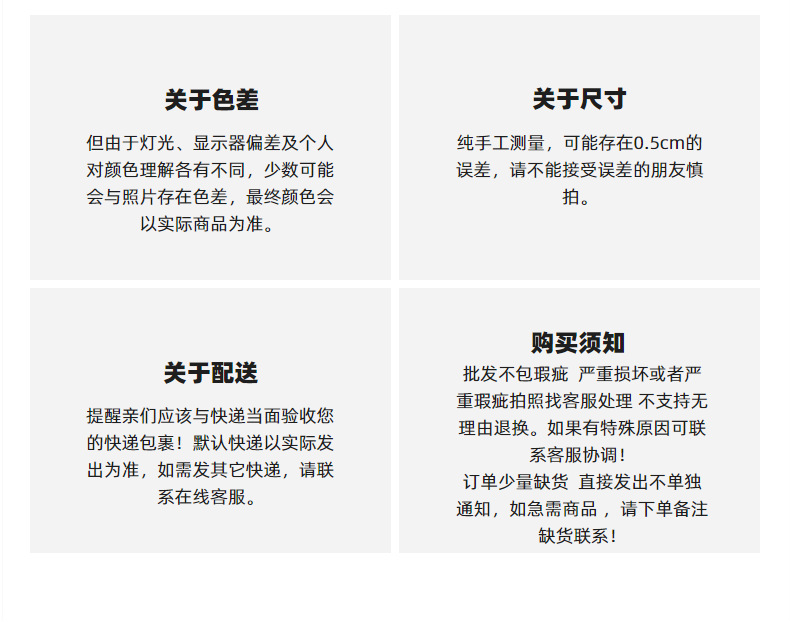 因客服回家过年,故春节期间只接单不发货,所有的产品将在春节结束后,02月26日按时间先后顺序陆续安排发货,在此期间有任何问题请留言,节后我们会给您处理,给您带来的不便敬请谅解。