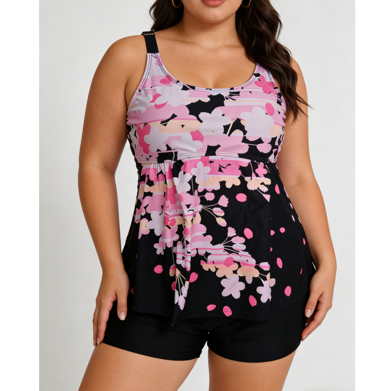 2023 새로운 유럽과 미국의 대외 무역 아마존 스플릿 Tankini 수영복 프린트 스커트 개더 스트랩 수영복 여성