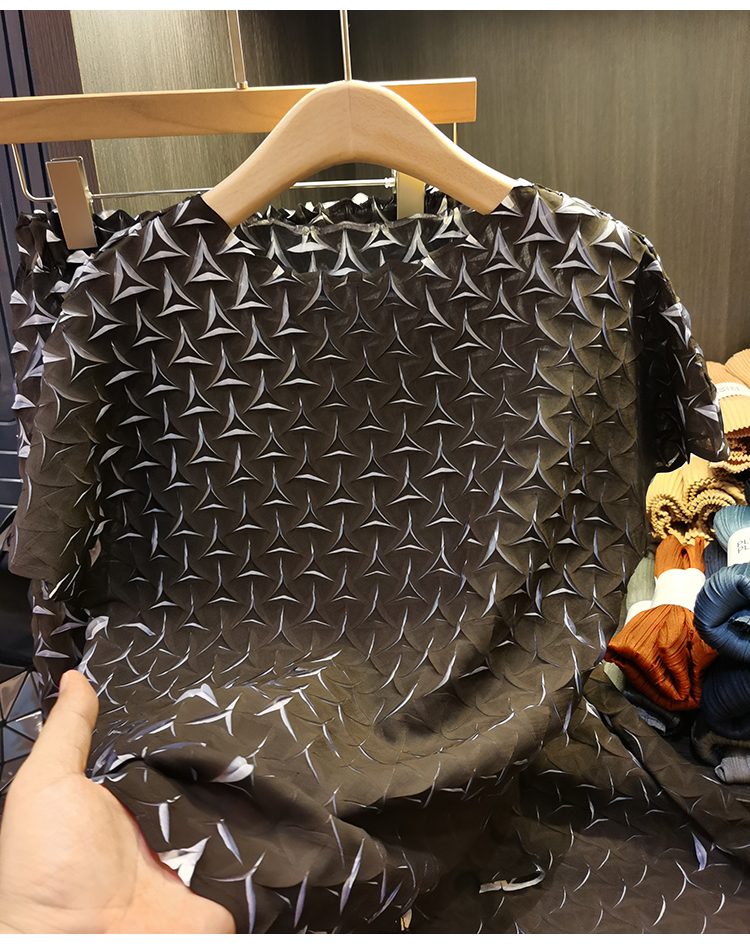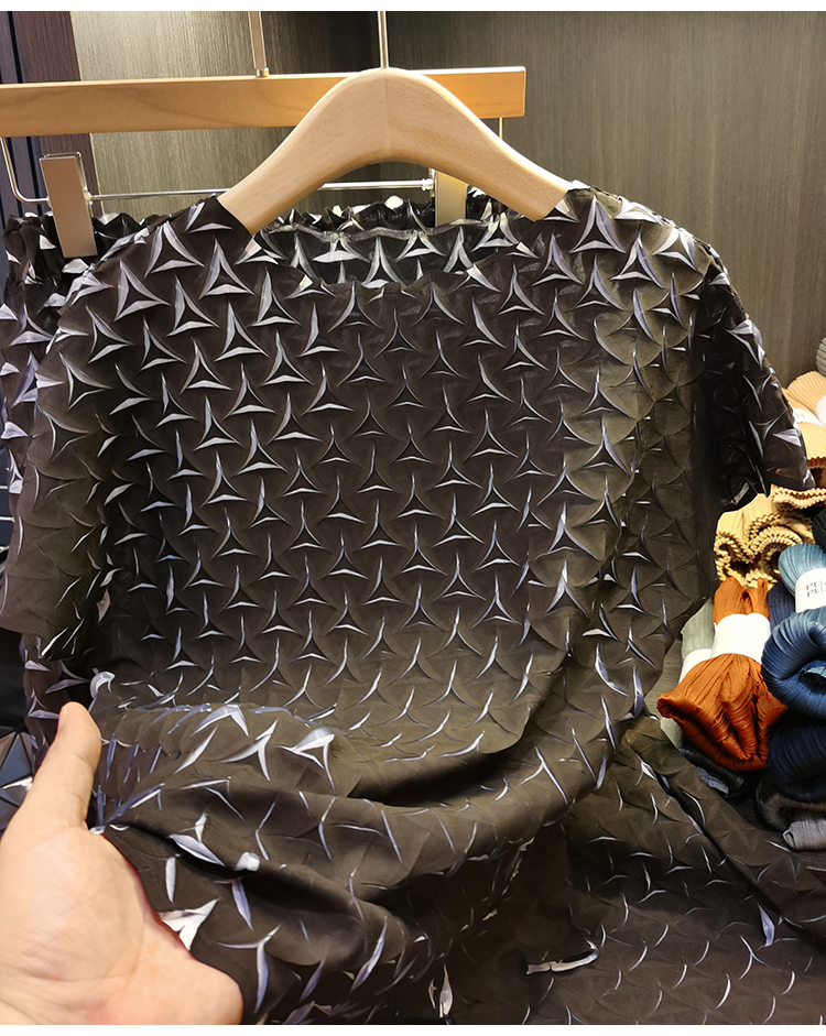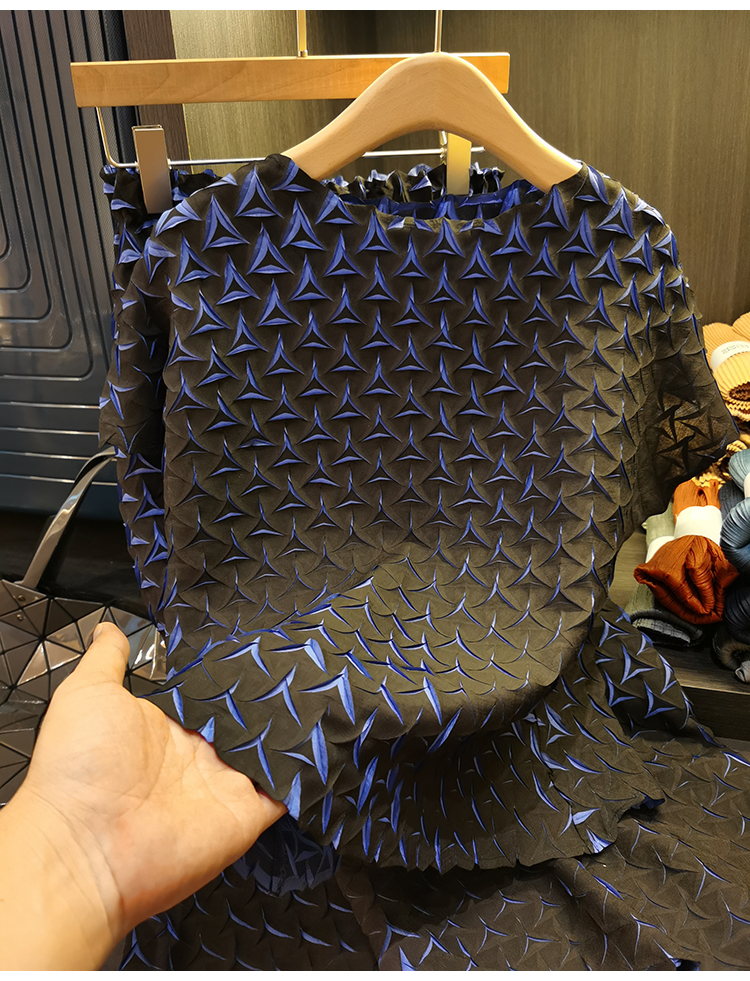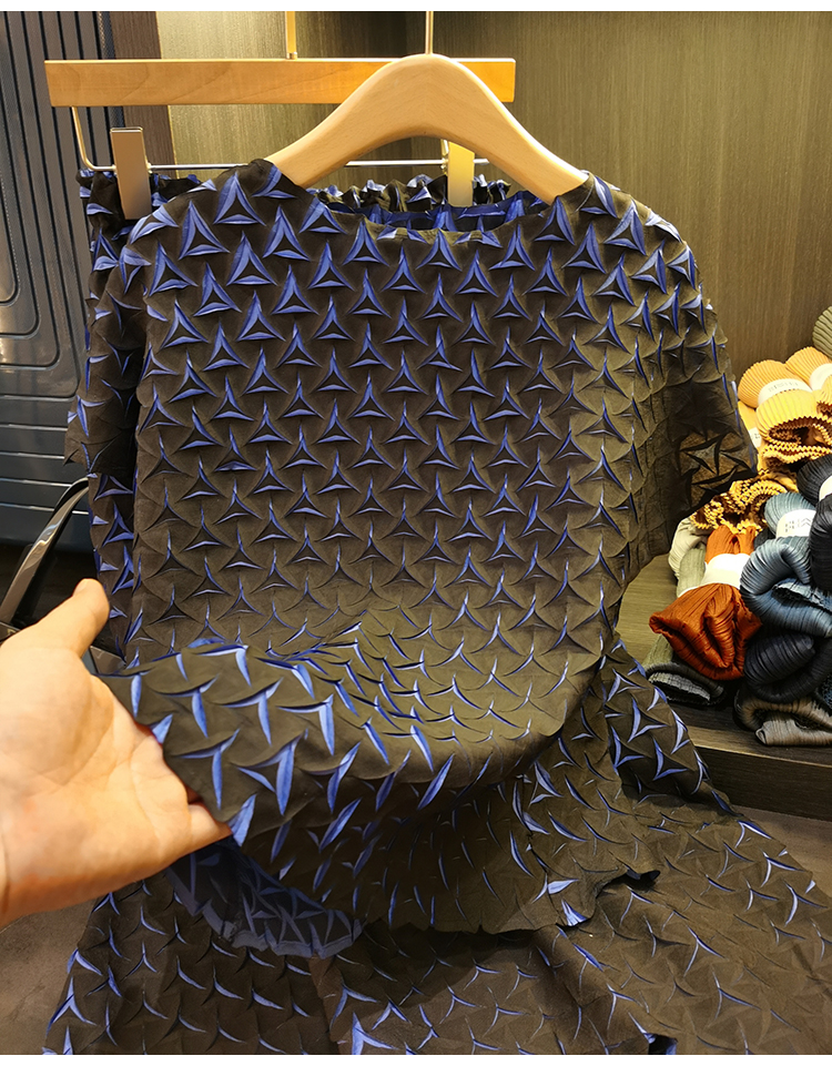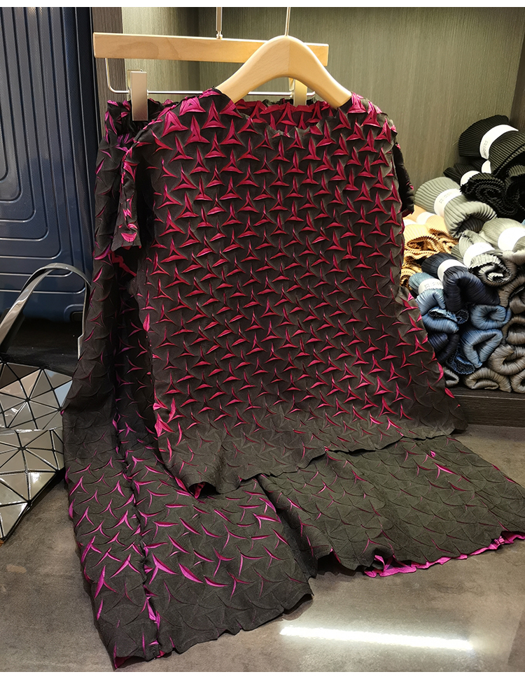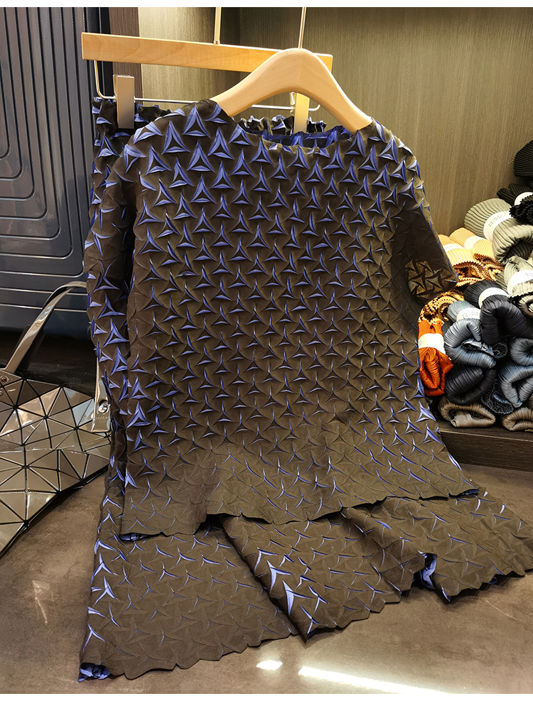 새로운 세트 자연 허리 여름 여성 플러스 사이즈 슬림 티셔츠 + 스커트 주름 3 차원 세트 YZH