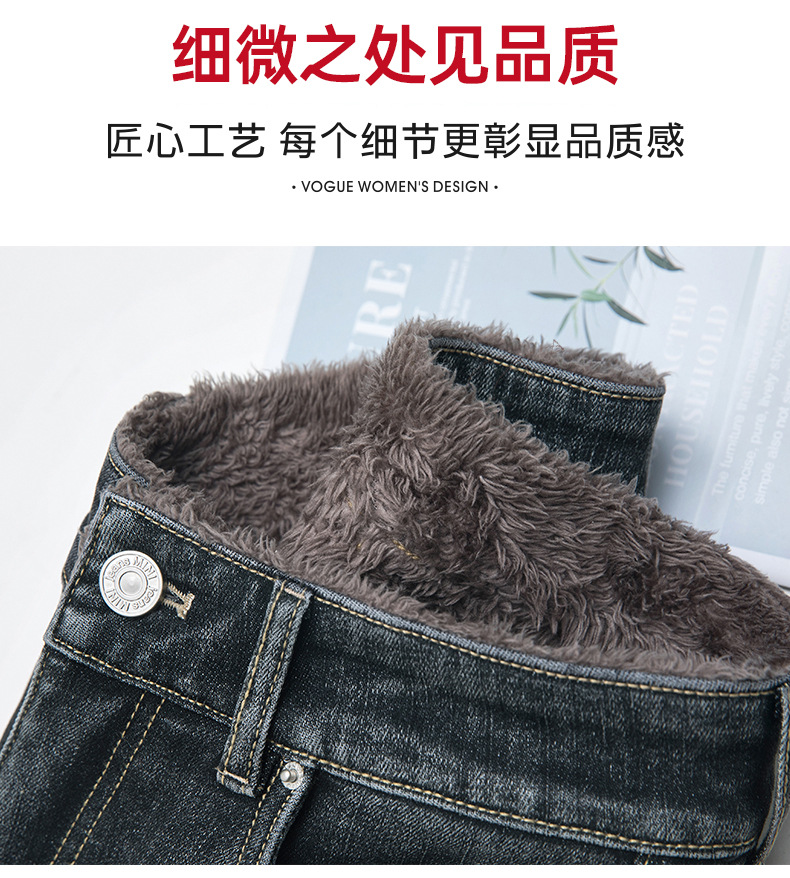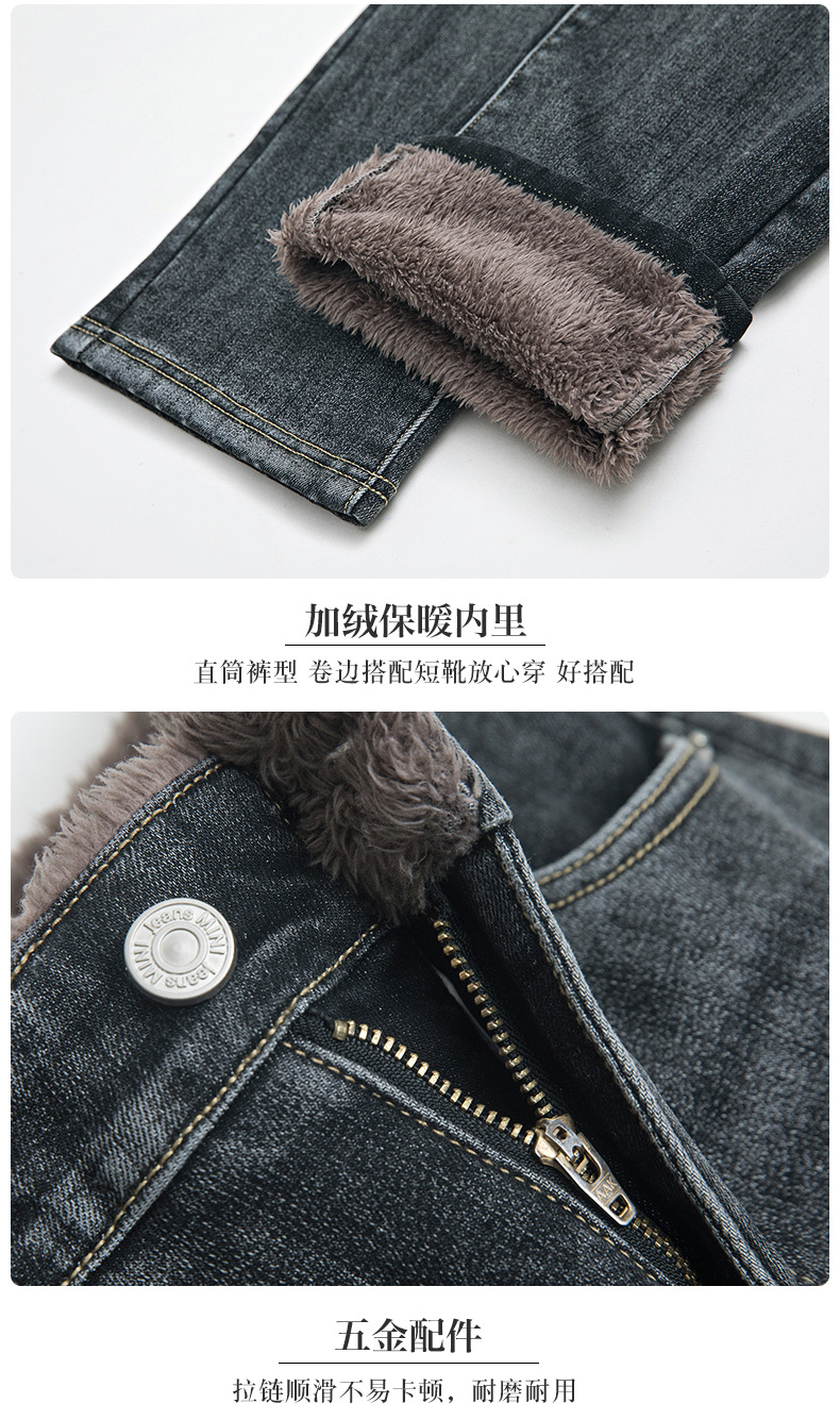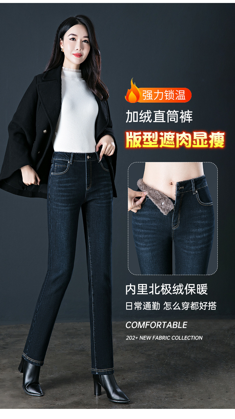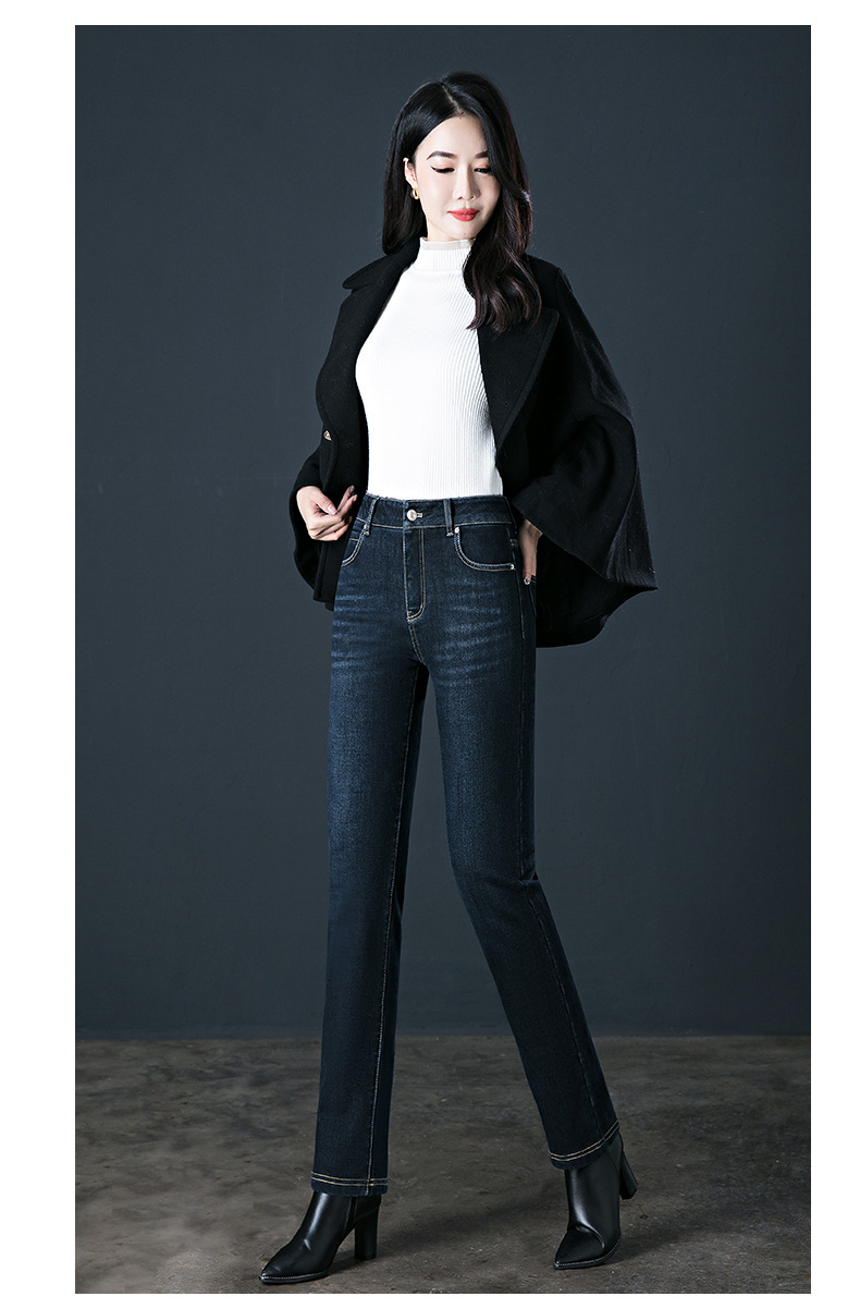 기모 두꺼운 청바지 여성의 높은 탄성 작은 스트레이트 따뜻한 바지 하이 웨이스트 슬리밍 연기 회색 중년 엄마 바지