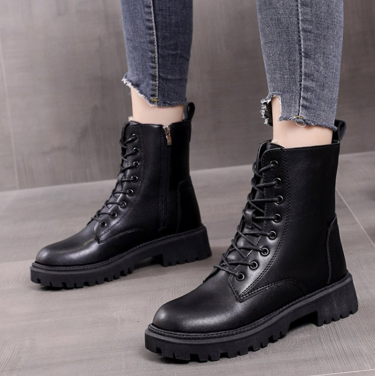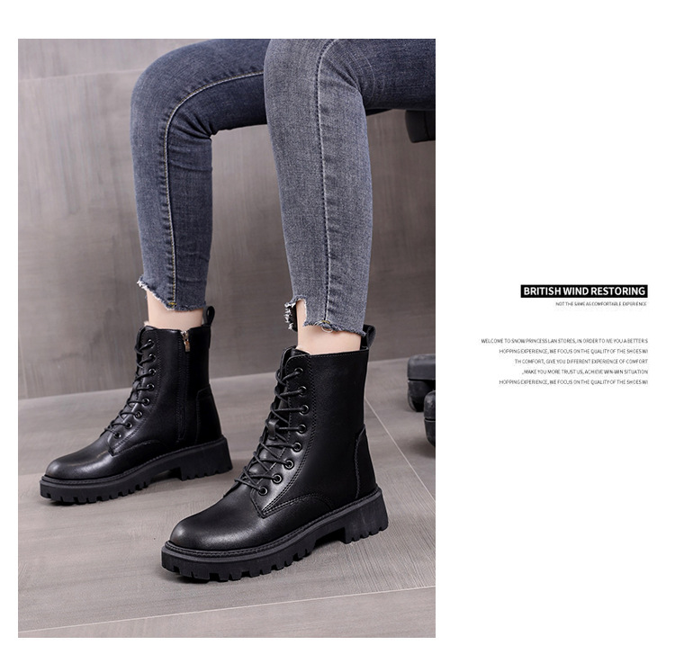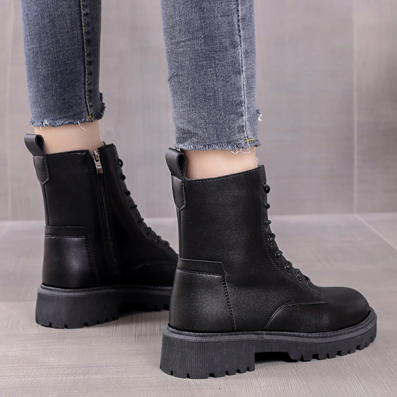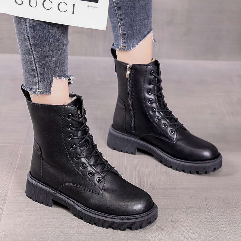 마틴 부츠 영국 스타일 2024 가을 겨울 신상 라운드 토 숏부츠 여학생용 두꺼운 밑창 플러스 벨벳 두꺼운 여성 부츠스토어 가기