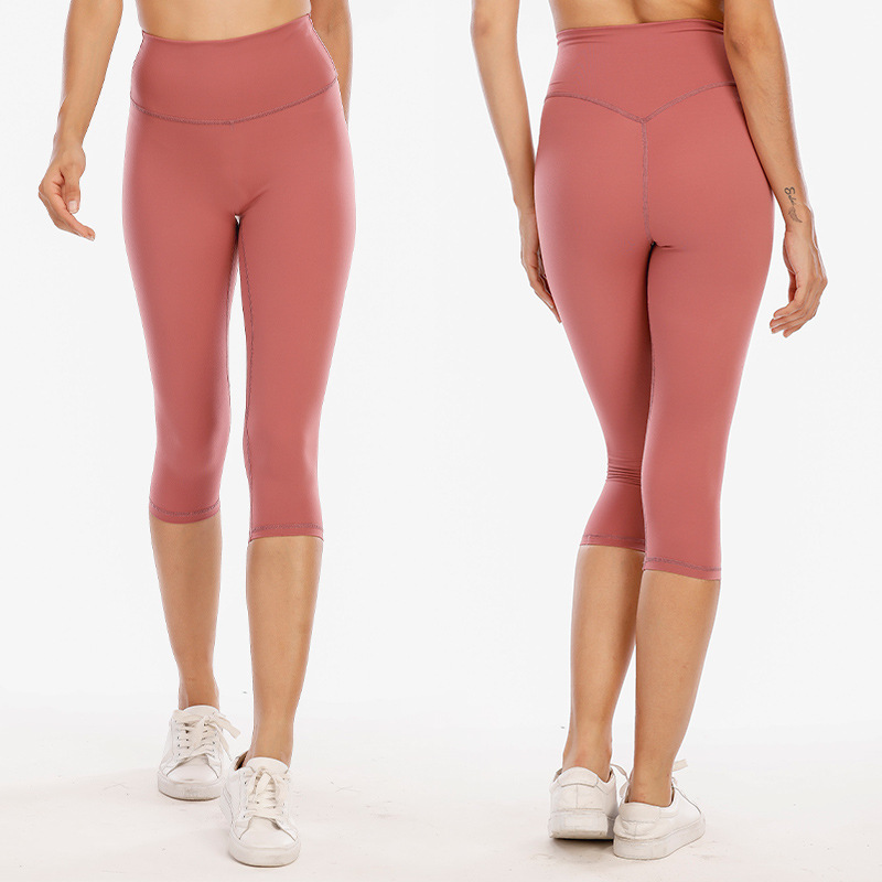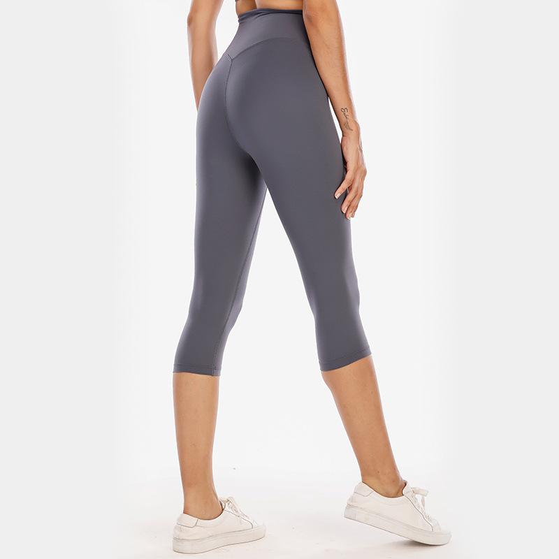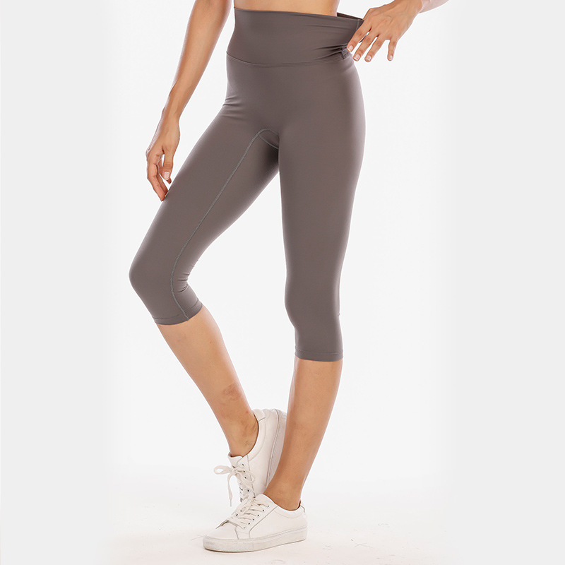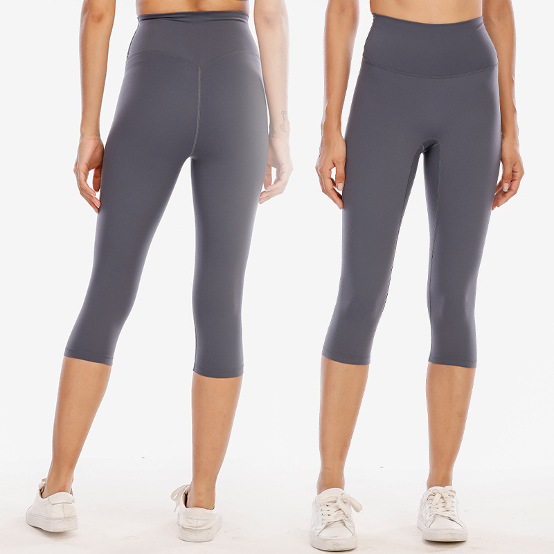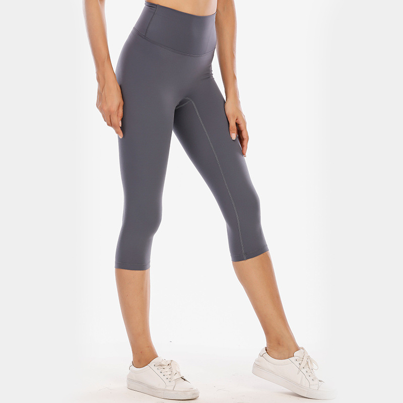 2022 세대 알몸 요가 크롭 팬츠 여성용 힙 러닝 피트니스 양면 샌딩 팬츠 속건 고탄력 요가 팬츠