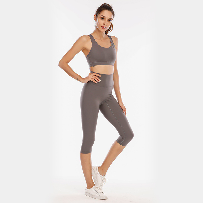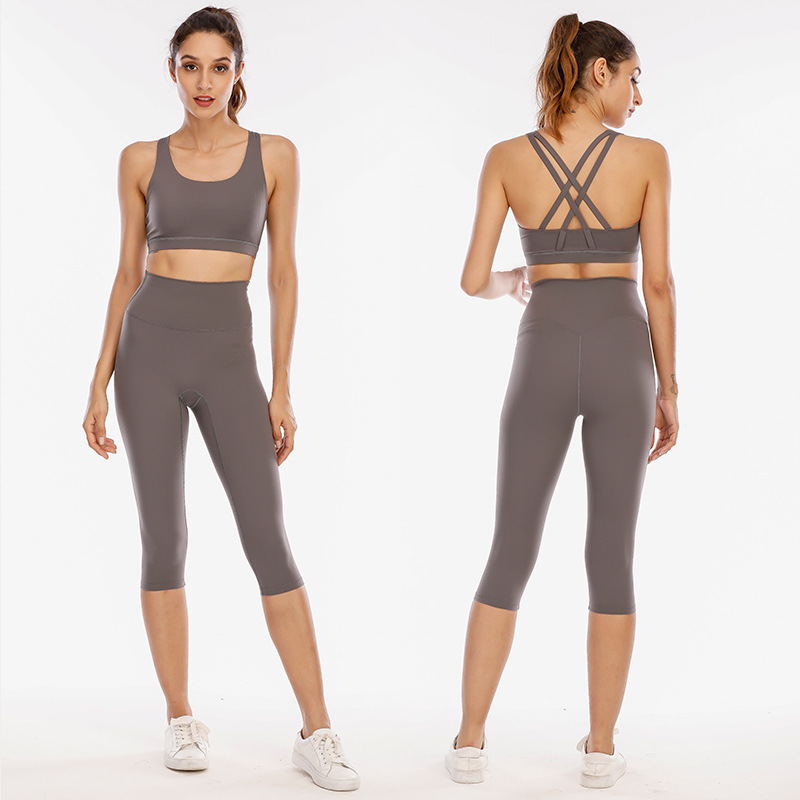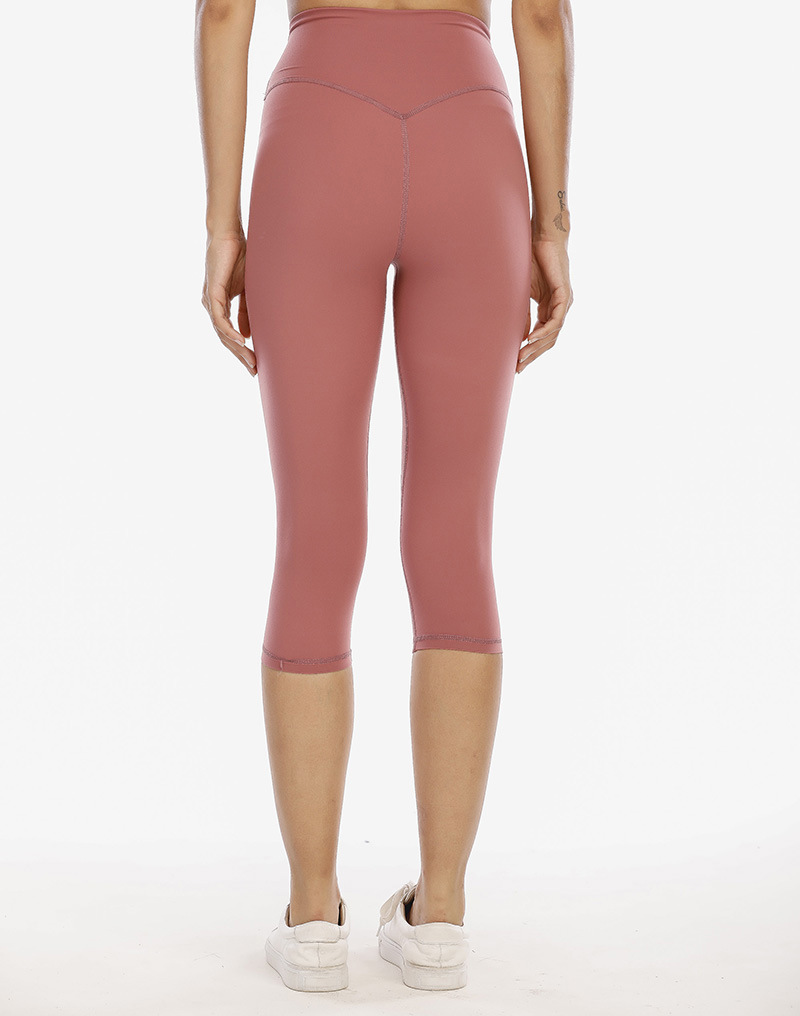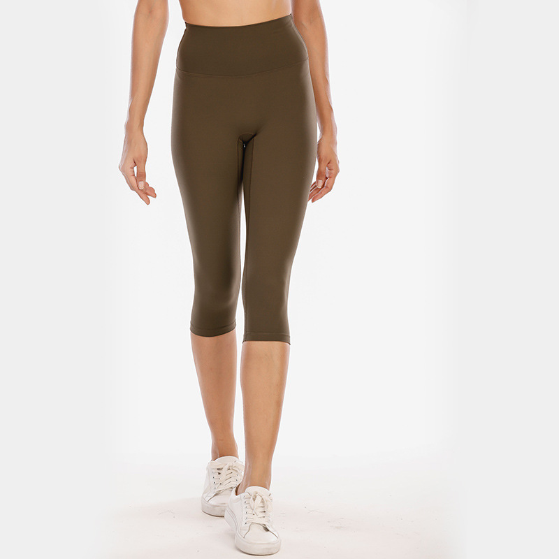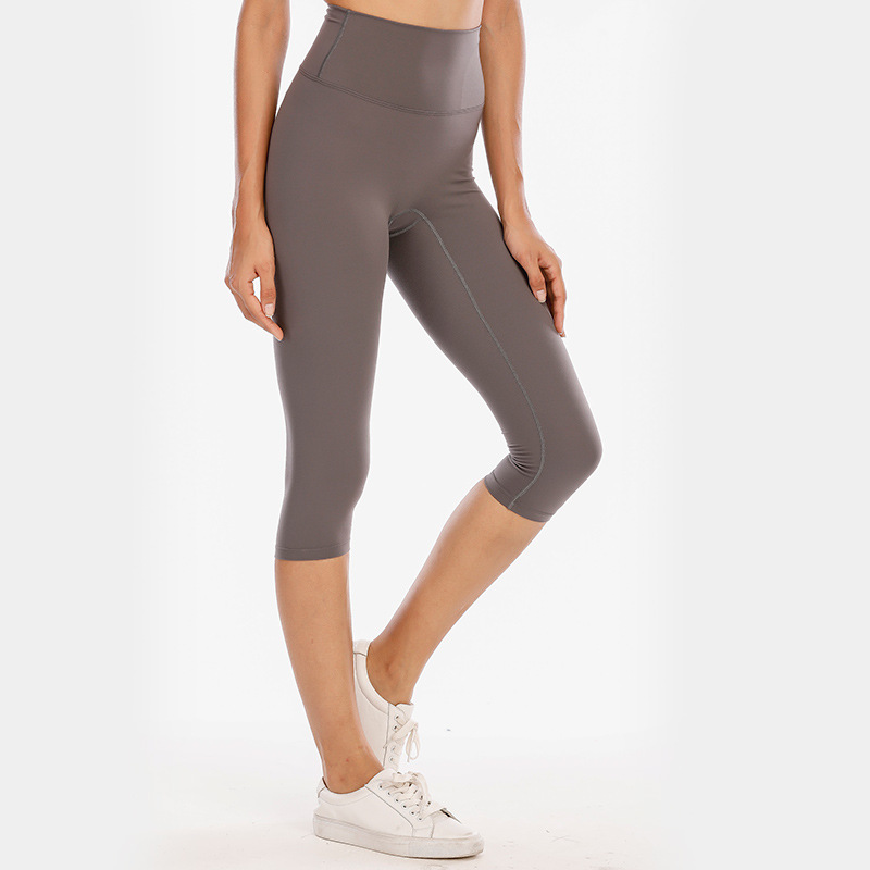 2022 세대 알몸 요가 크롭 팬츠 여성용 힙 러닝 피트니스 양면 샌딩 팬츠 속건 고탄력 요가 팬츠