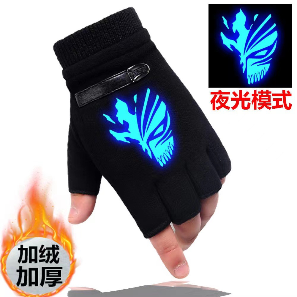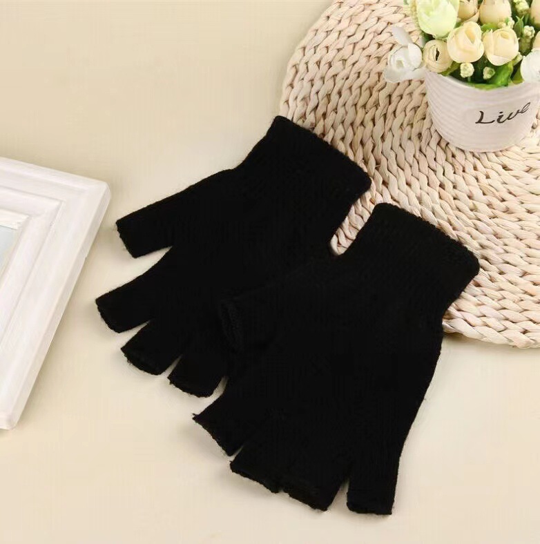 어린이 장갑 남자의 겨울 기모 두꺼운 따뜻한 한국 스타일 잘 생긴 야외 반 승마 반 손가락 장갑 여학생