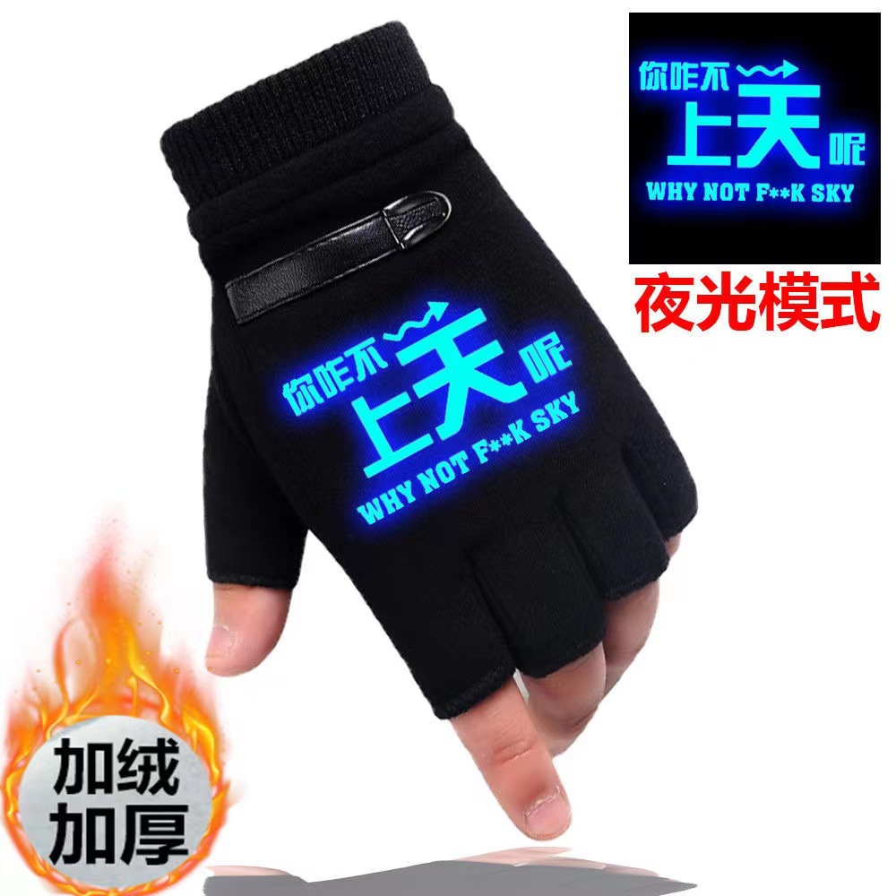 어린이 장갑 남자의 겨울 기모 두꺼운 따뜻한 한국 스타일 잘 생긴 야외 반 승마 반 손가락 장갑 여학생스토어 가기