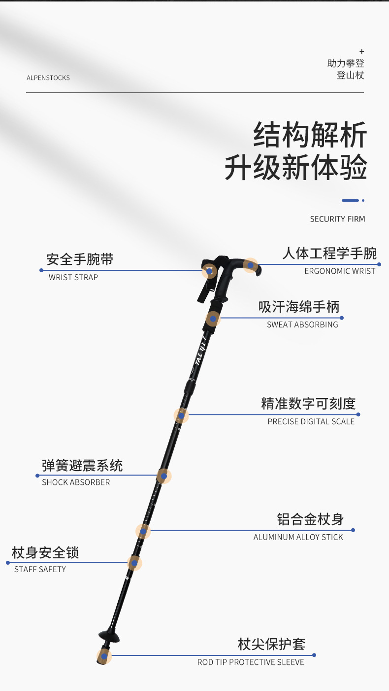 남성과 여성을위한 야외 정품 경량 텔레스코픽 스틱 등산 하이킹 장비 노인을위한 미끄럼 방지 다기능 목발