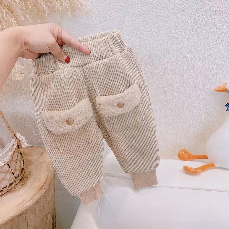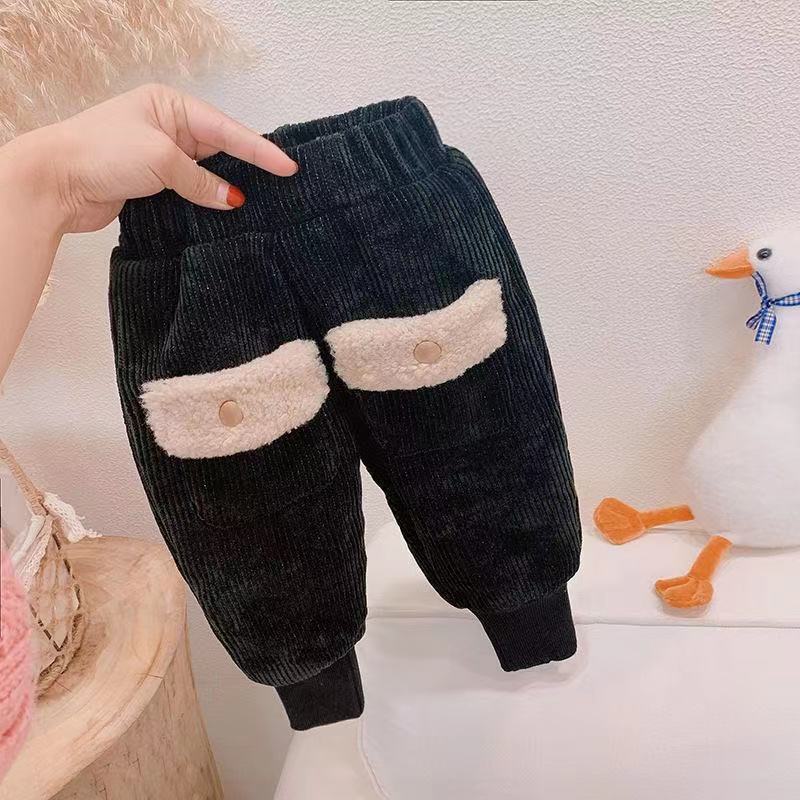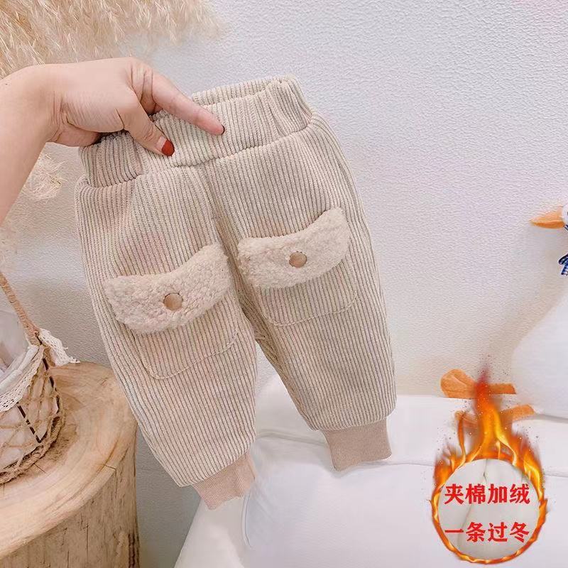어린이 기모 바지 2023 새로운 겨울 서양 스타일 여아 바지 가을과 겨울 두꺼운 겉옷 면 바지 따뜻한 바지