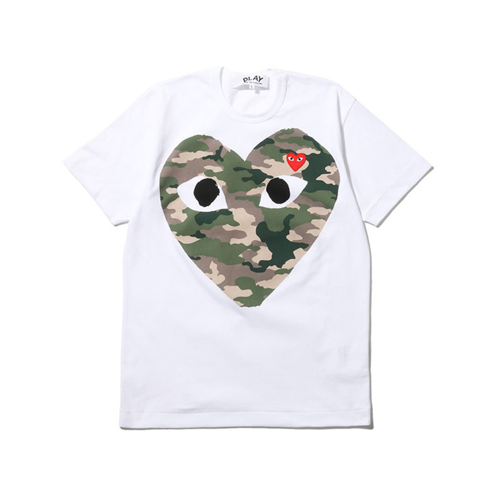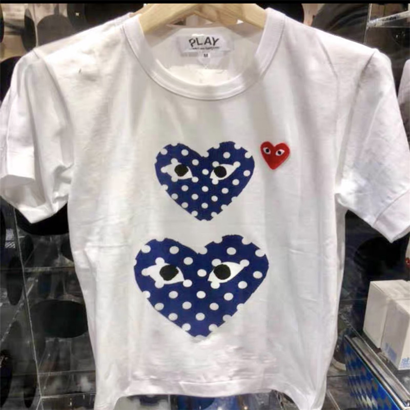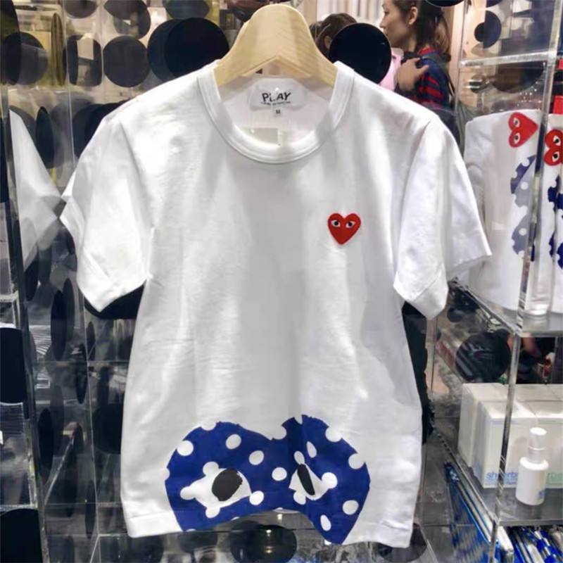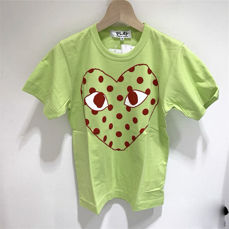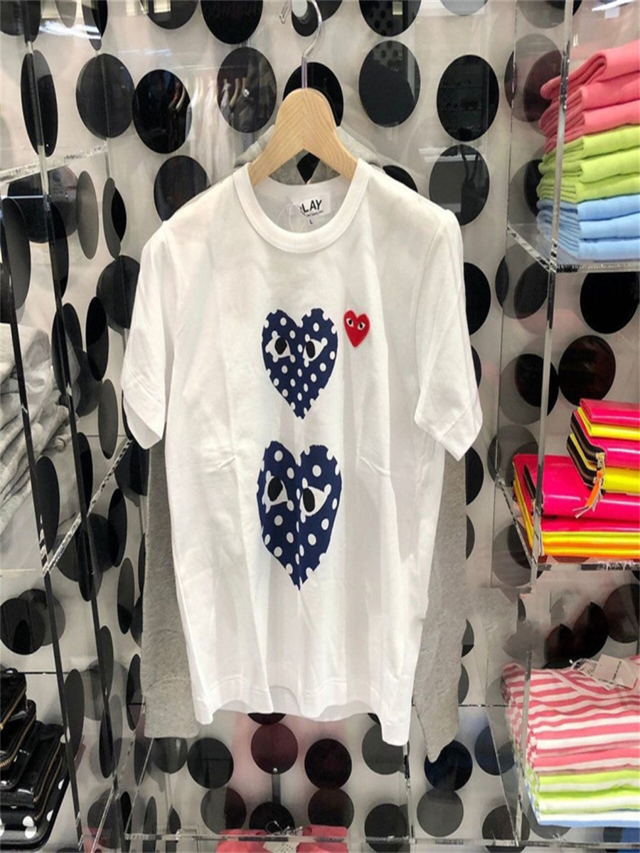 AMI Kawakou play 여름 위장 폴카 도트 러브 라운드 넥 남성과 여성 같은 스타일 커플 반팔 티셔츠스토어 가기