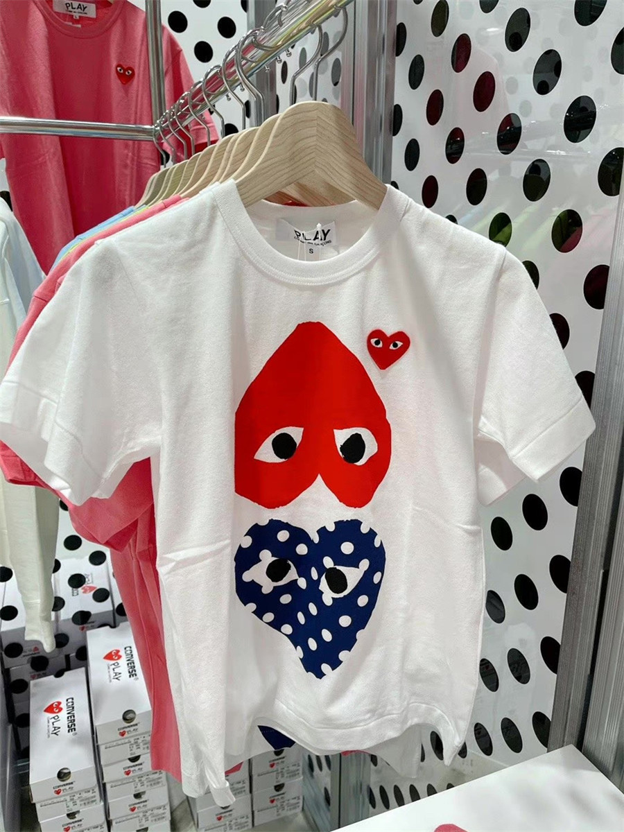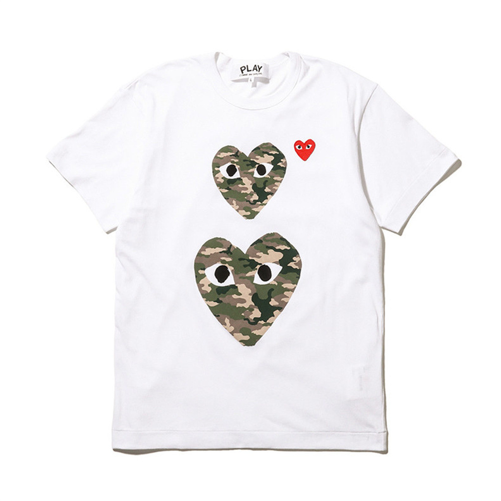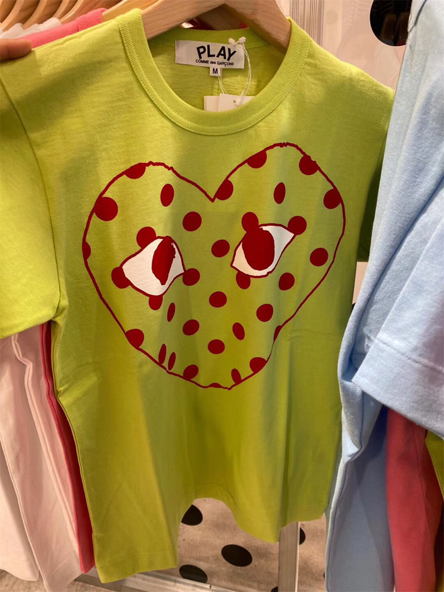 AMI Kawakou play 여름 위장 폴카 도트 러브 라운드 넥 남성과 여성 같은 스타일 커플 반팔 티셔츠스토어 가기