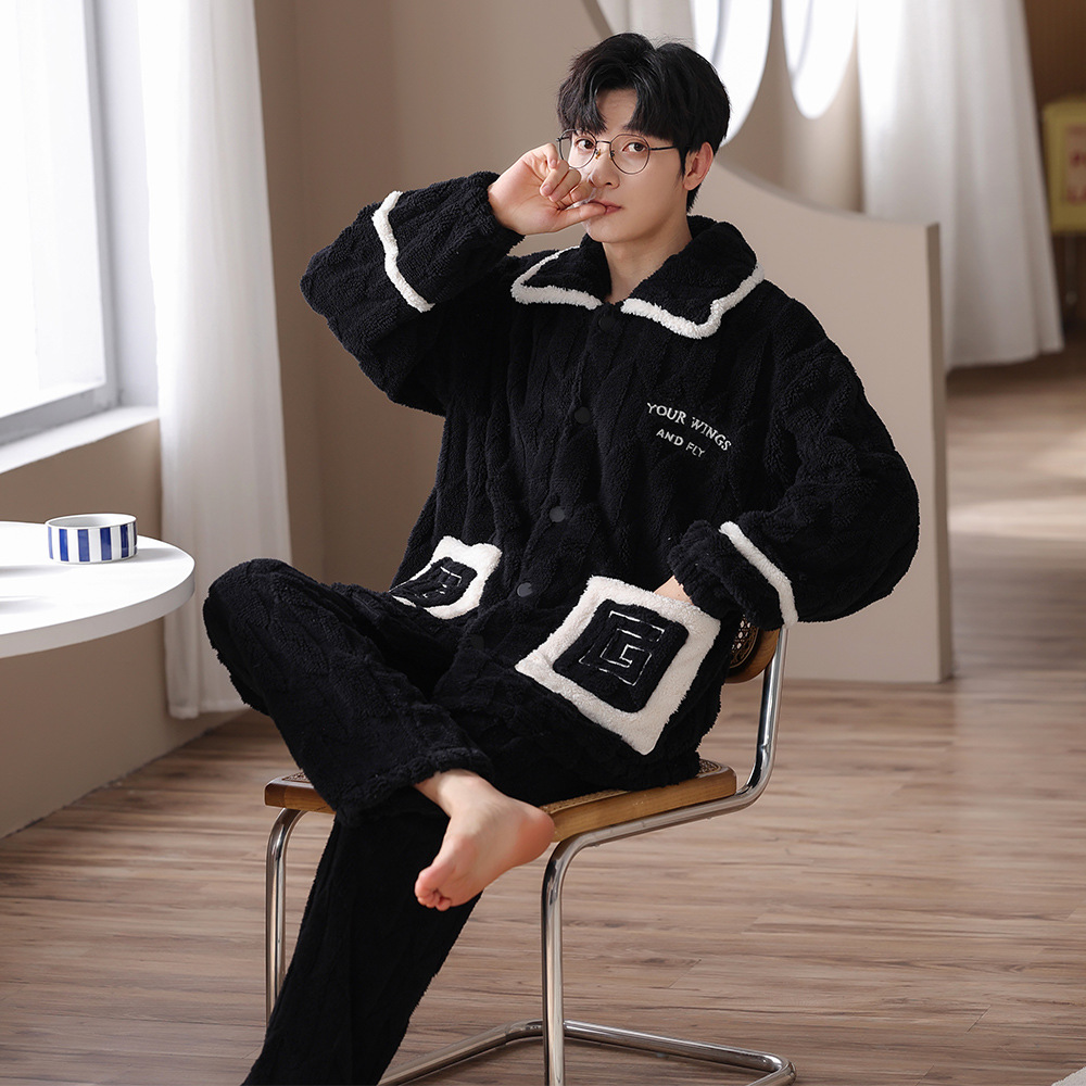 젊은 커플 카디건 잠옷 겨울 기모 따뜻한 플란넬 소녀의 달콤한 공주 스타일 홈 의류 투피스 세트스토어 가기