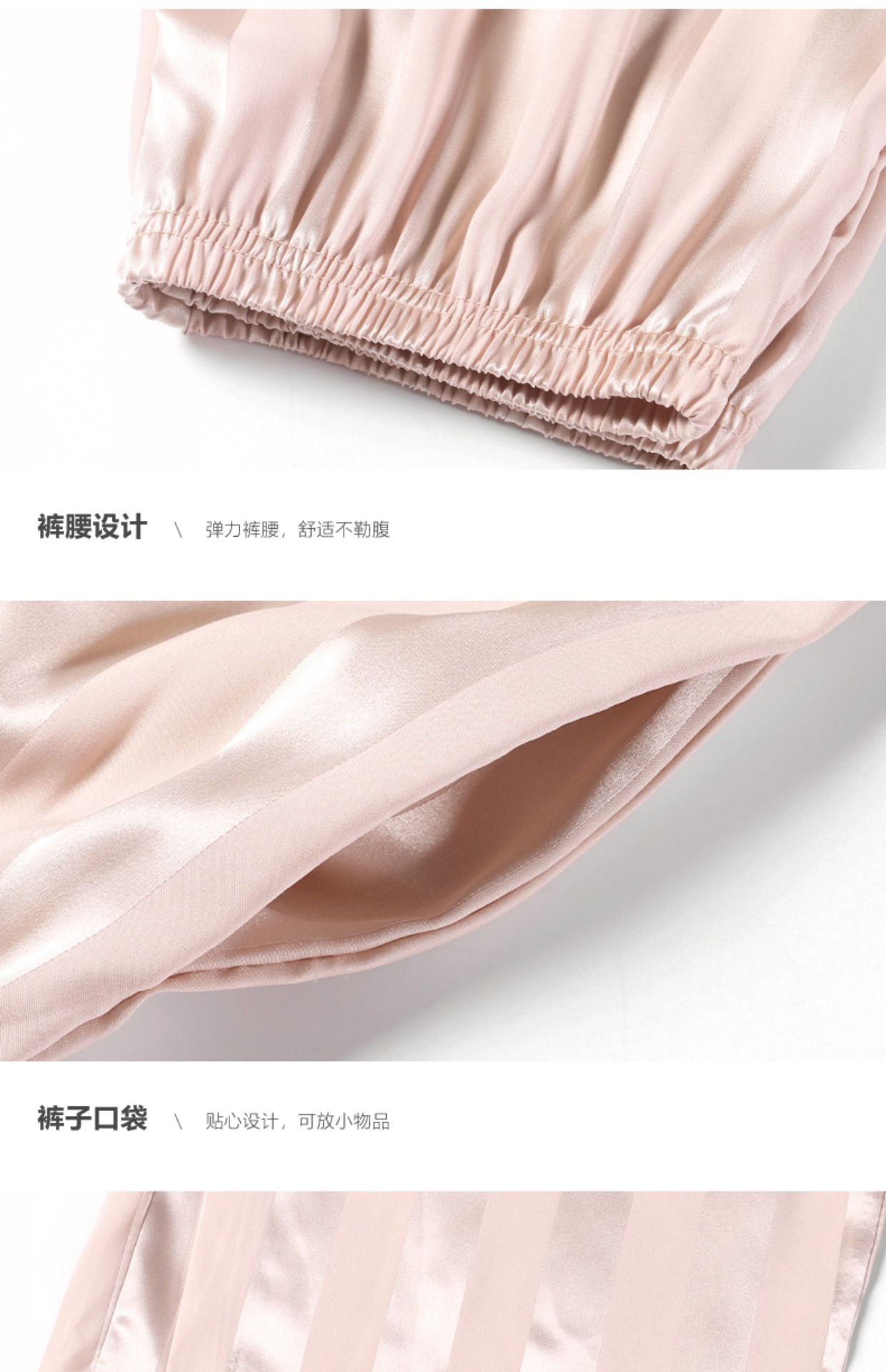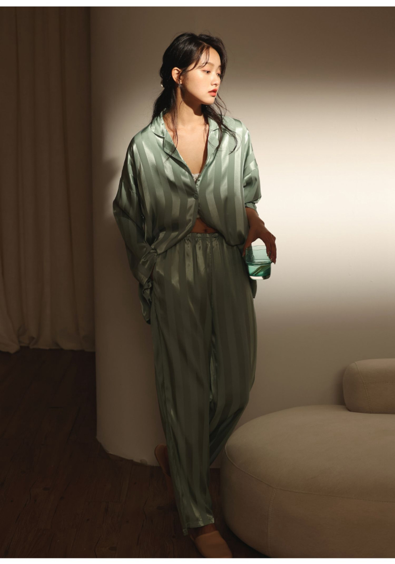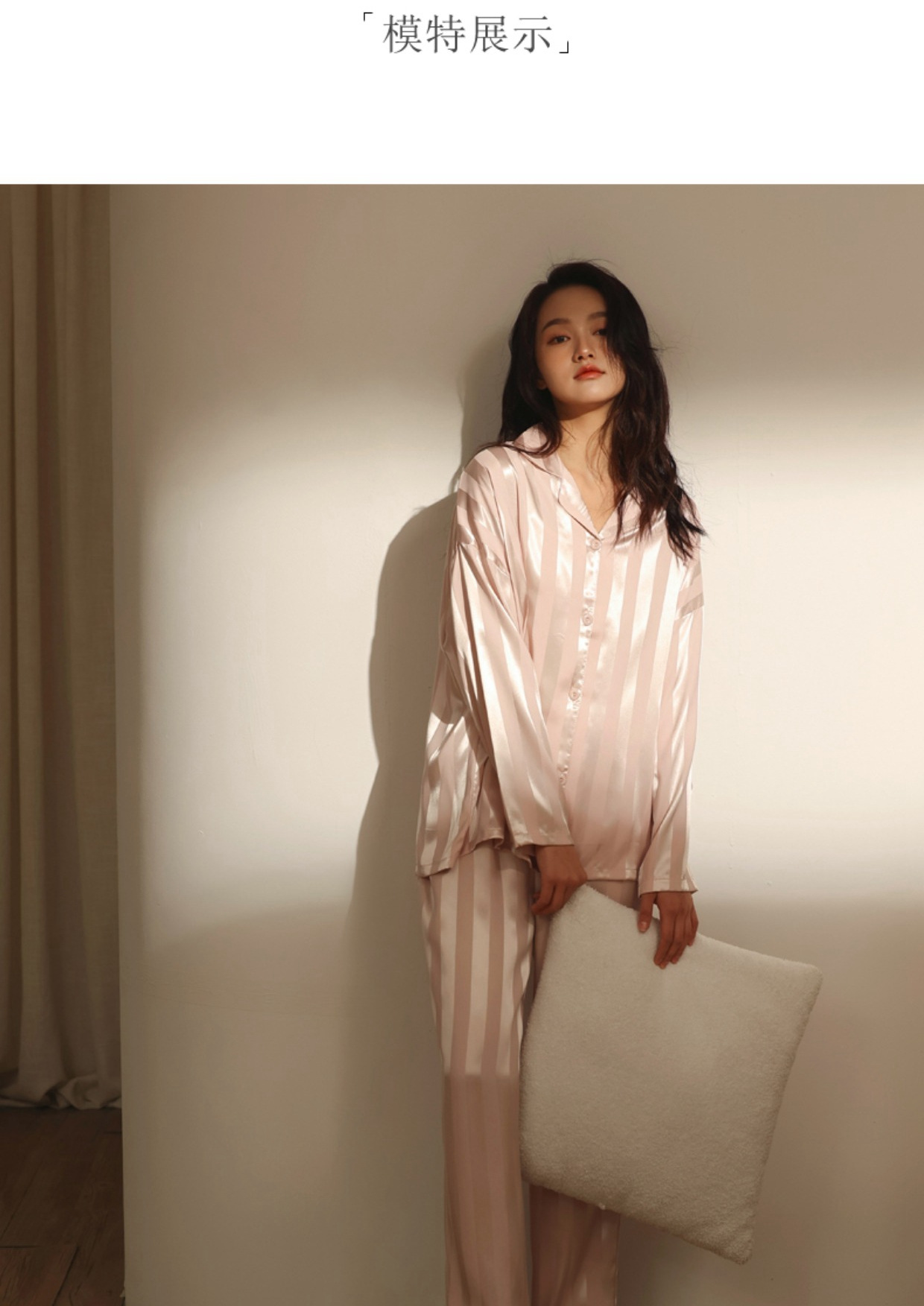 2023 봄과 가을 감각 스트라이프 자카드 실크 스크린 빨간 잠옷 여자의 긴 소매 가정 옷 세트 에어컨 옷 시원한 여름