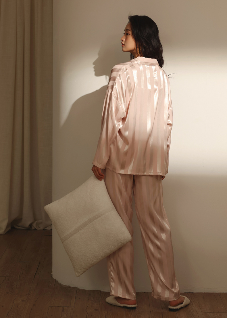 2023 봄과 가을 감각 스트라이프 자카드 실크 스크린 빨간 잠옷 여자의 긴 소매 가정 옷 세트 에어컨 옷 시원한 여름스토어 가기