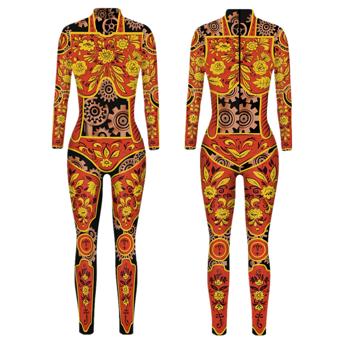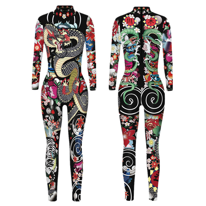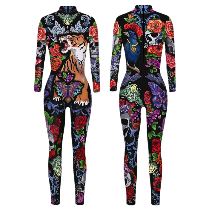 20.22 백만 거룩한 축제 새로운 핫 3D 동물 프린트 슬림 핏 성인 어린이 슬림 긴 소매 cos 점프 수트