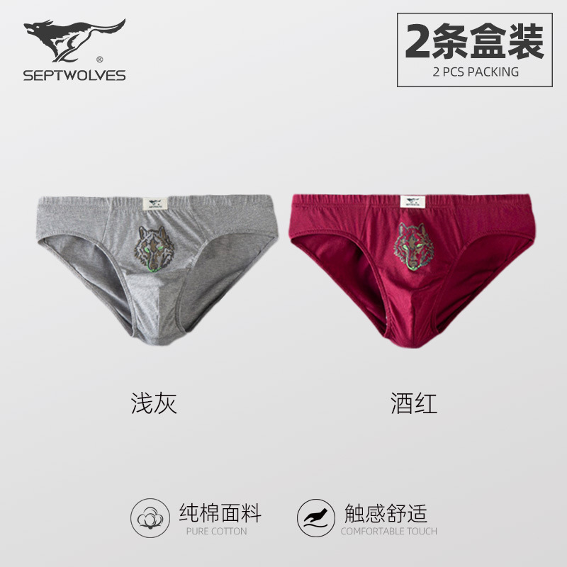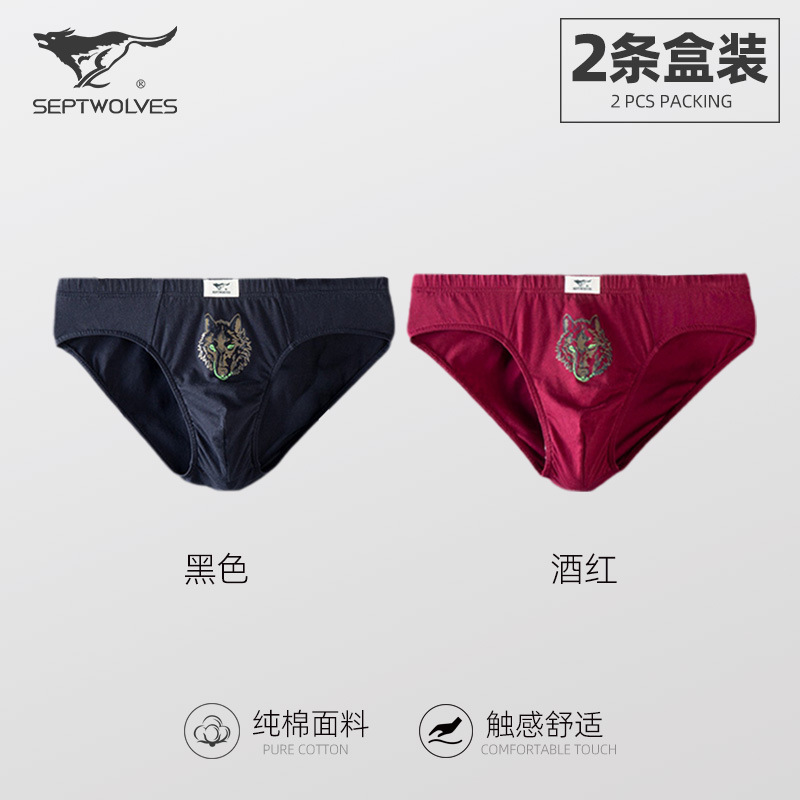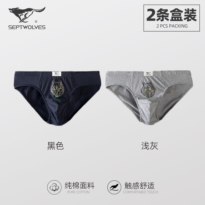 일곱 늑대 늑대 머리면 남성 브리프 땀 흡수성 항균 통기성 청소년 허리 브리프 2 상자