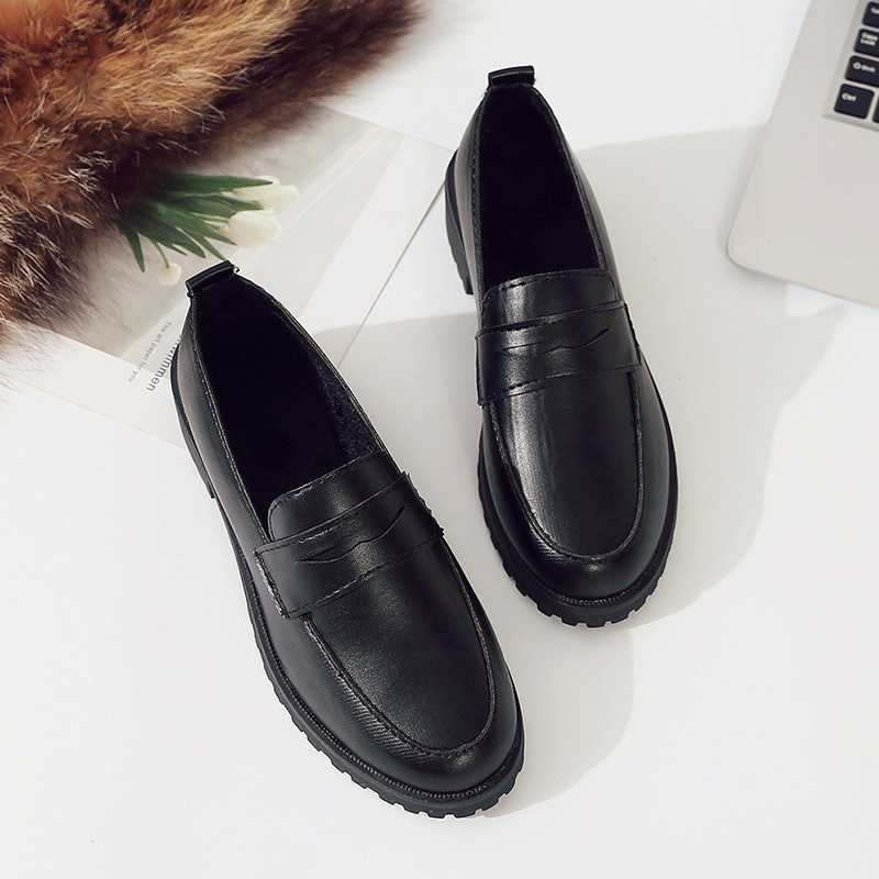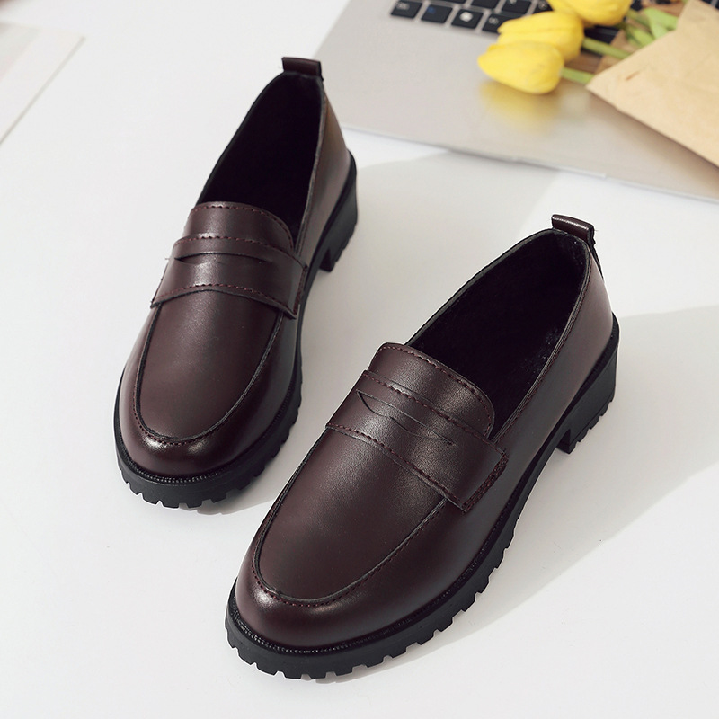 싱글 슈즈 여성용 2022 봄 한국판 두꺼운 굽 캐주얼 신발 학술 스타일 소형 가죽 신발 라운드 헤드 페달 조수 도매