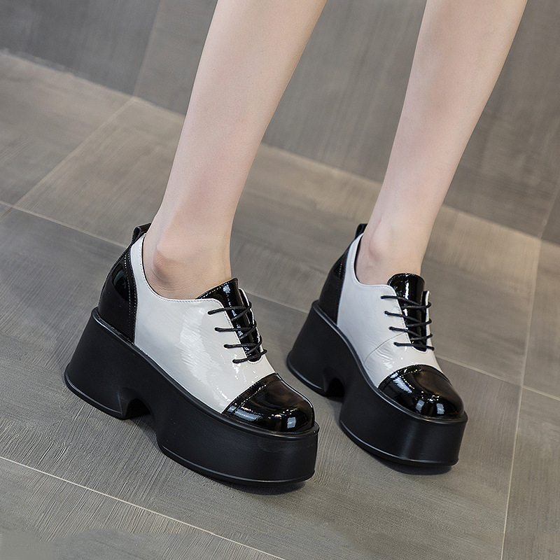 영국 스타일 여성 신발 가을/겨울 2023 두꺼운 밑창 높이 증가 캐주얼 스퀘어 토 플랫폼 신발 슈퍼 하이힐 트렌디 한 가죽 신발 싱글스토어 가기