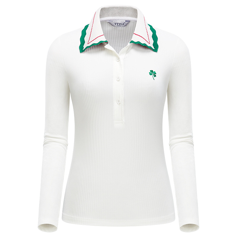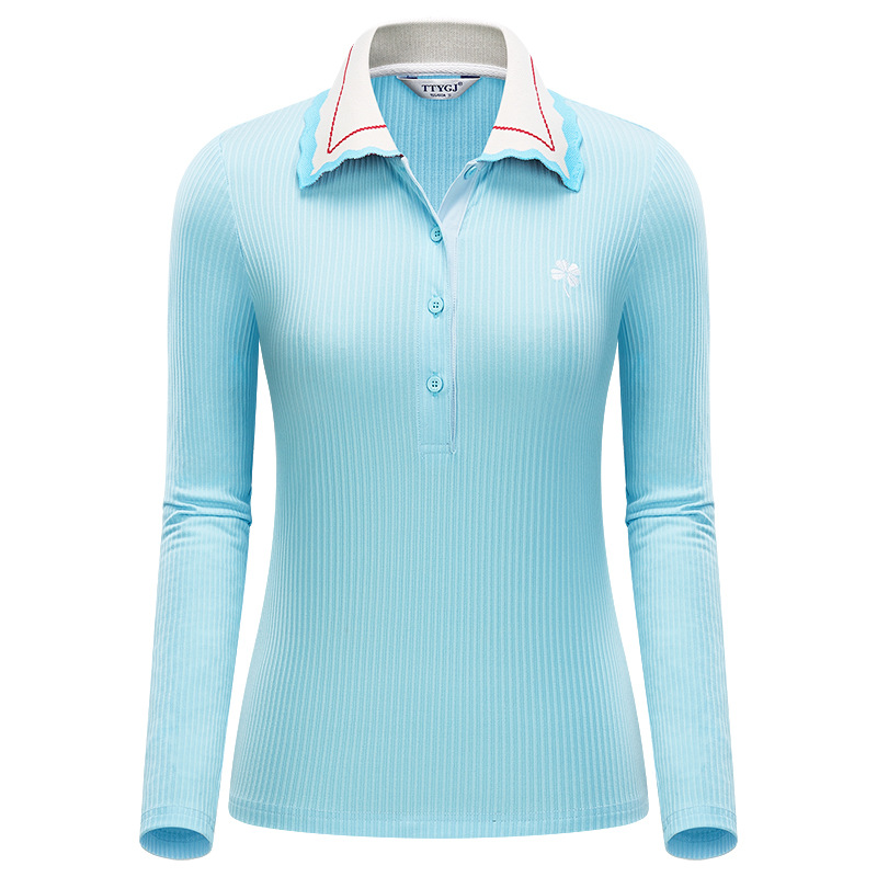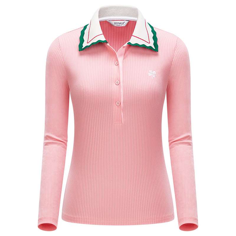 TTYGJ 골프 봄과 가을 여성용 니트 긴팔 얇은 스포츠 탑 스몰 칼라 슬림핏 캐주얼 저지