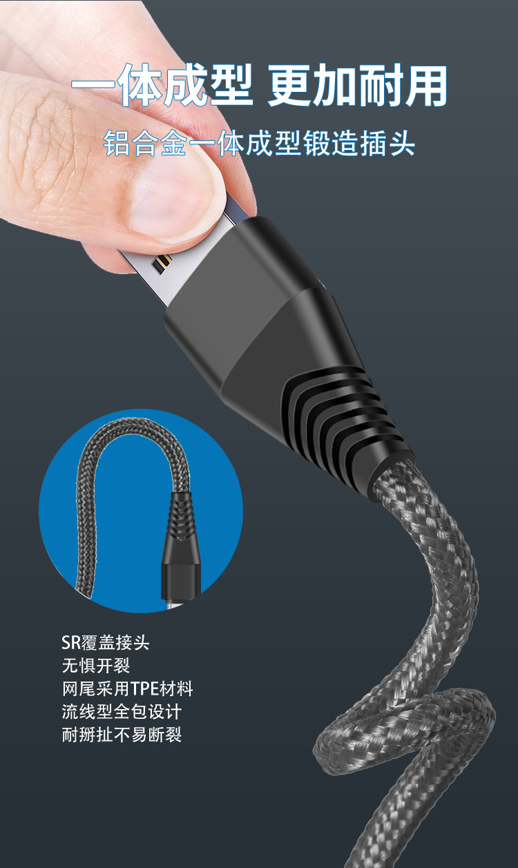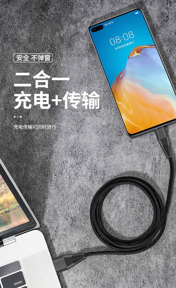 2M 나일론 꼰 6A 금속 데이터 케이블 안드로이드 애플 화웨이 Typec 충전 라인 휴대 전화 빠른 충전 라인