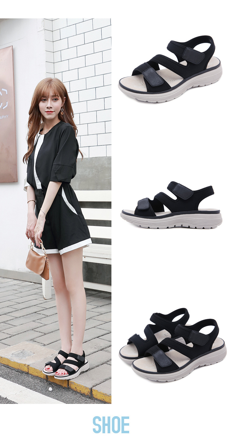 2025년 여름 신상 여성용 천연 가죽 샌들, 스포츠 스타일 웨지힐, 가볍고 벨크로 스트랩, 큰 사이즈 슬리퍼, 여성용, 도매 가능스토어 가기