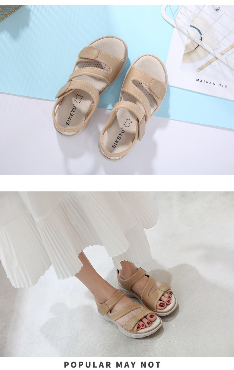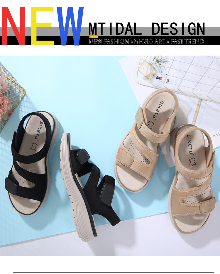 2025년 여름 신상 여성용 천연 가죽 샌들, 스포츠 스타일 웨지힐, 가볍고 벨크로 스트랩, 큰 사이즈 슬리퍼, 여성용, 도매 가능