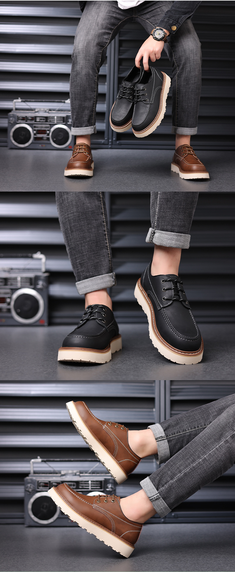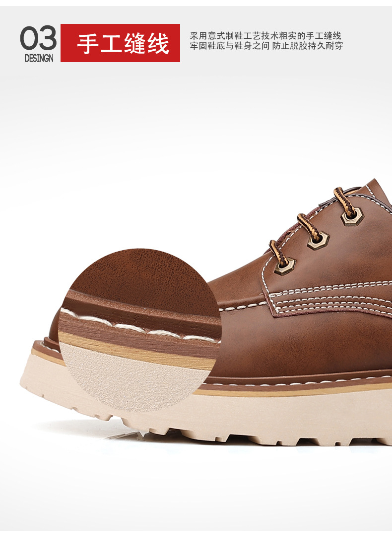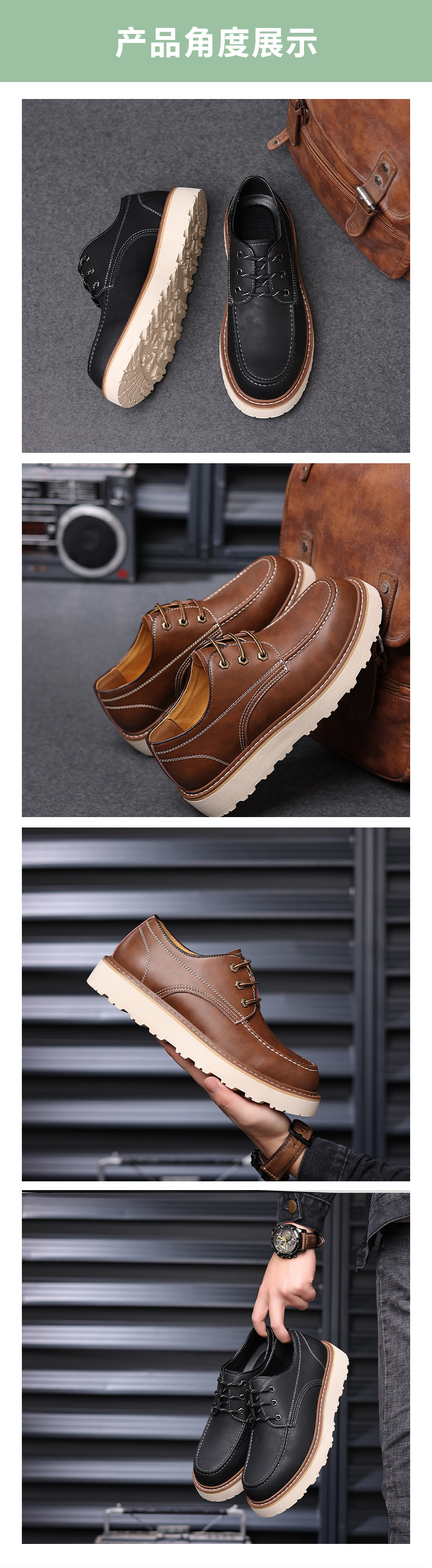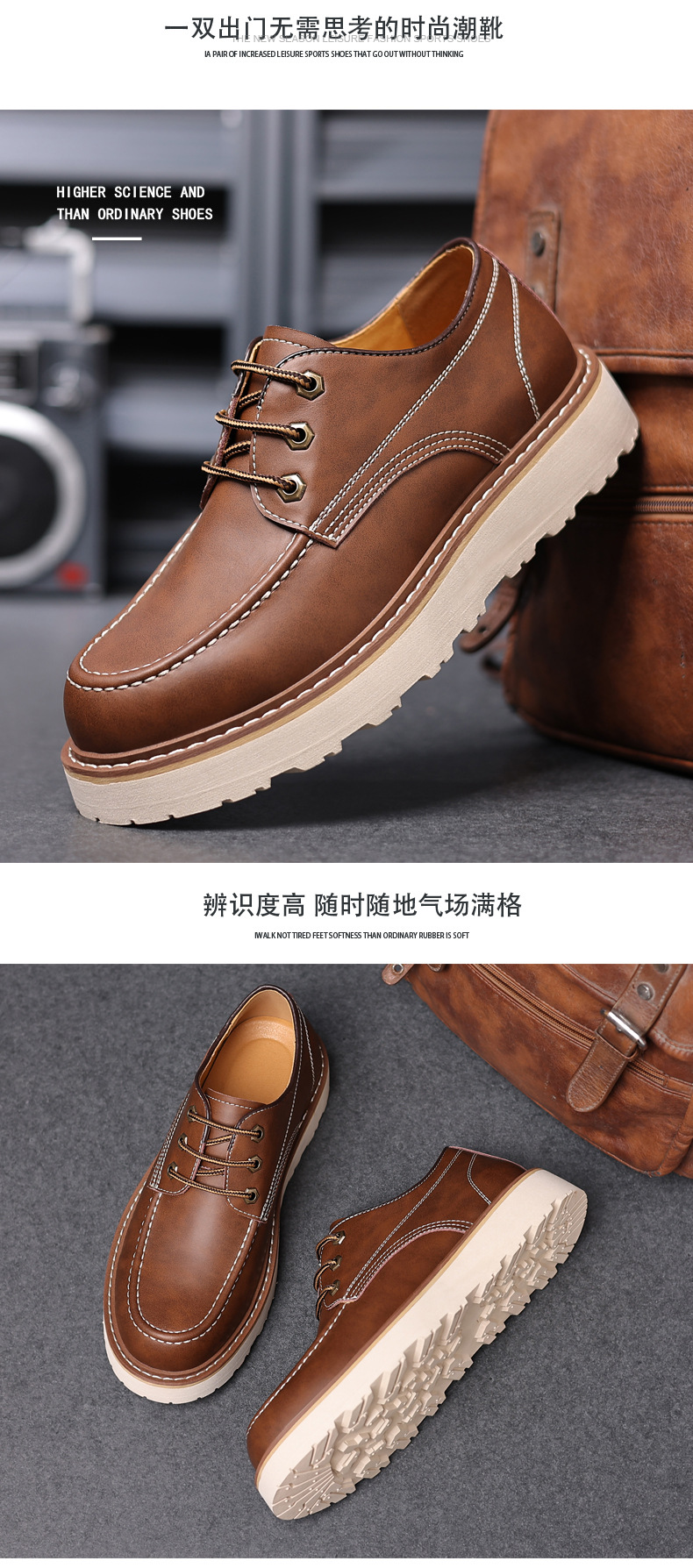 아웃도어 키높이 신발, 마틴 부츠, 남성용 로우탑 레트로 캐주얼 슈즈, 브리티시 스타일 워크 부츠, 로우탑 화이트솔 작은 가죽신스토어 가기