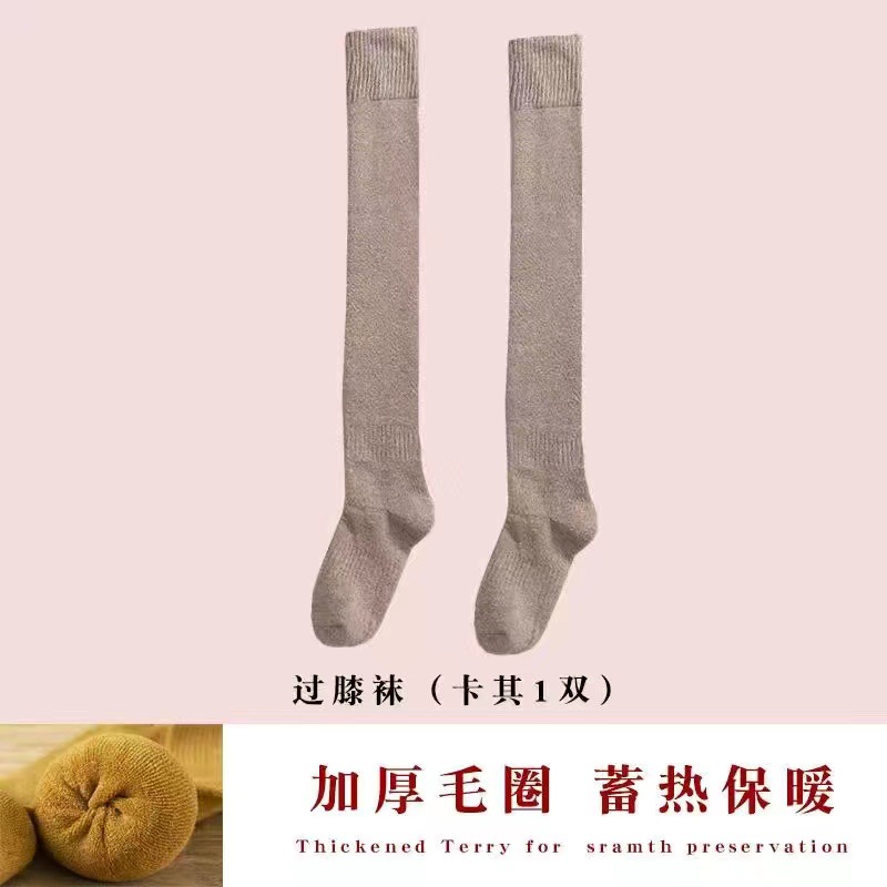 두꺼운 따뜻한 무릎 위 양말 여자의 테리 두꺼운 양말 가을과 겨울 한국 스타일 여자의 허벅지 높은 기모 스타킹스토어 가기