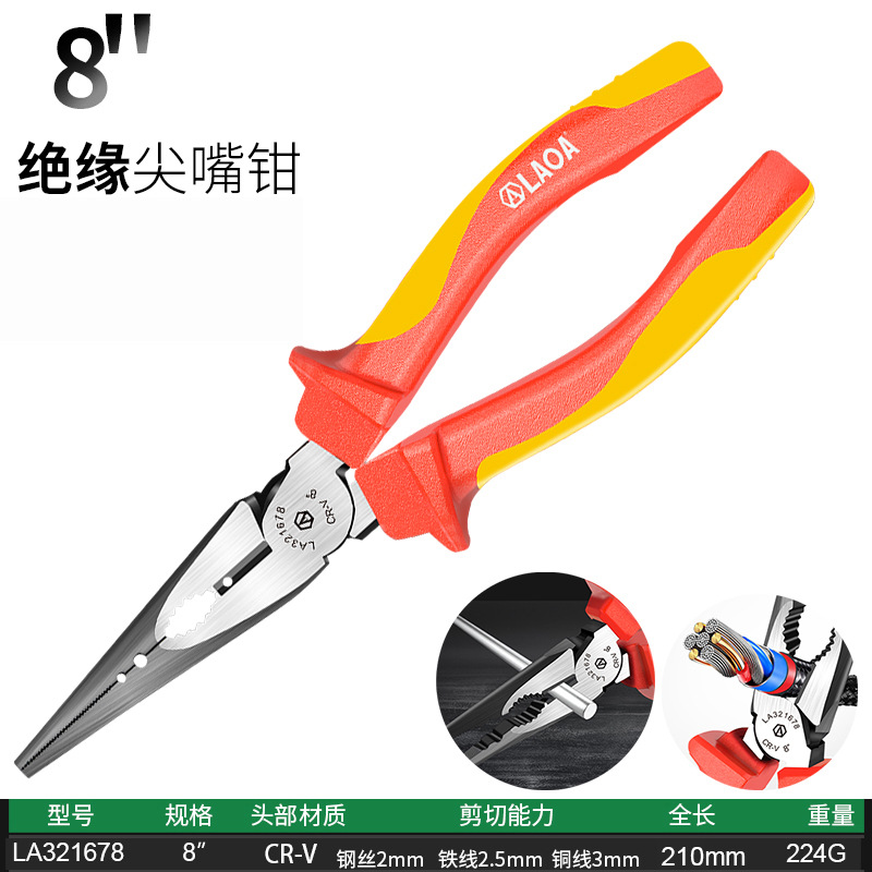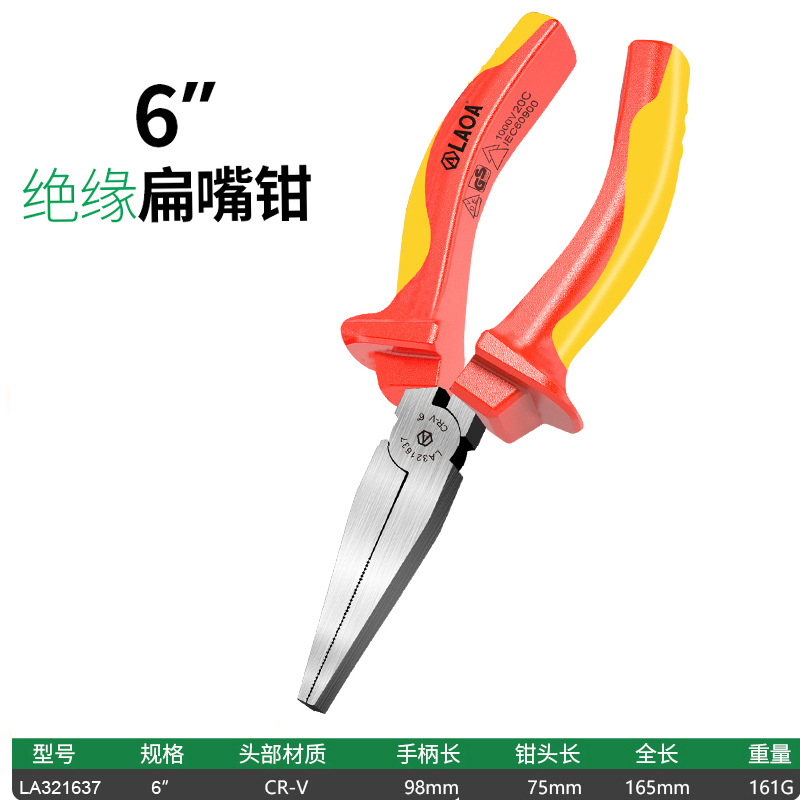 오래된 1000V 고전압 절연 전기 펜치 VDE 인증 바이스 와이어 펜치 뾰족한 코 펜치 대각선 펜치