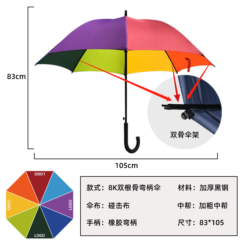 • 8 면 무지개 우산 더블 스켈레톤-23 인치