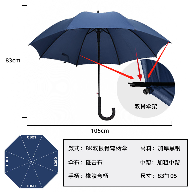 우산 맞춤 제작 대형 자동 두꺼운 직선형 우산, 비와 햇빛 모두 차단, 긴 손잡이 우산 도매, 로고 인쇄 가능