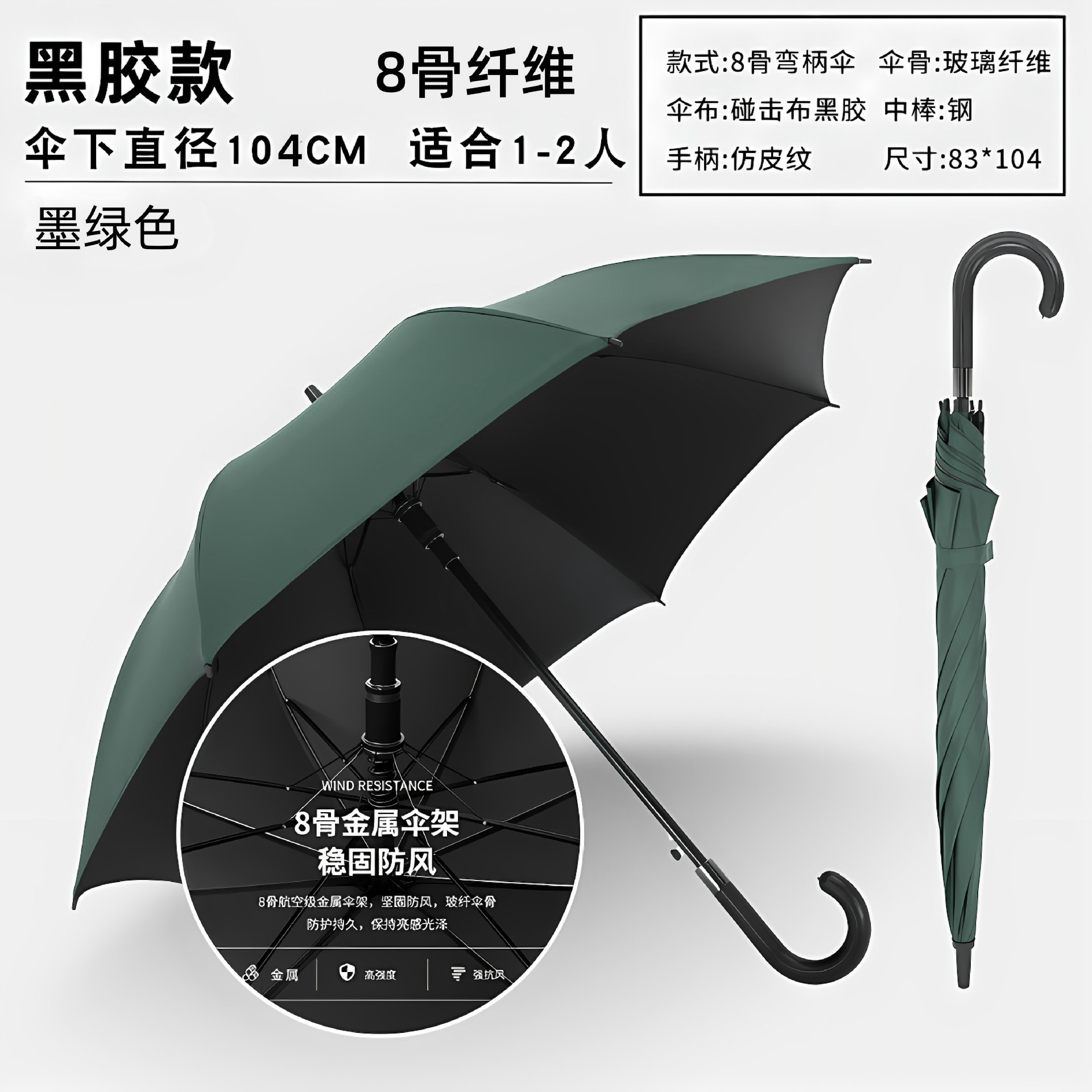 • 8본 짙은 녹색(섬유골) 곡선형 손잡이 - 23inch - 비닐 자외선 차단제 모델