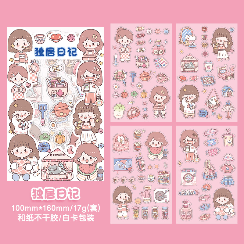 Anxiaoran의 일일 저널 및 종이 스티커 4 조각을 다이어리 앨범 장식 소재 문구 스티커로스토어 가기