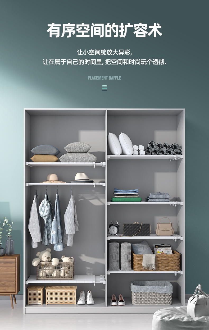 옷장 레이어드 파티션 펀치 프리 텔레스코픽 스토리지 랙 옷장 파티션 신발 캐비닛 고정 랙 기숙사 보관 유물