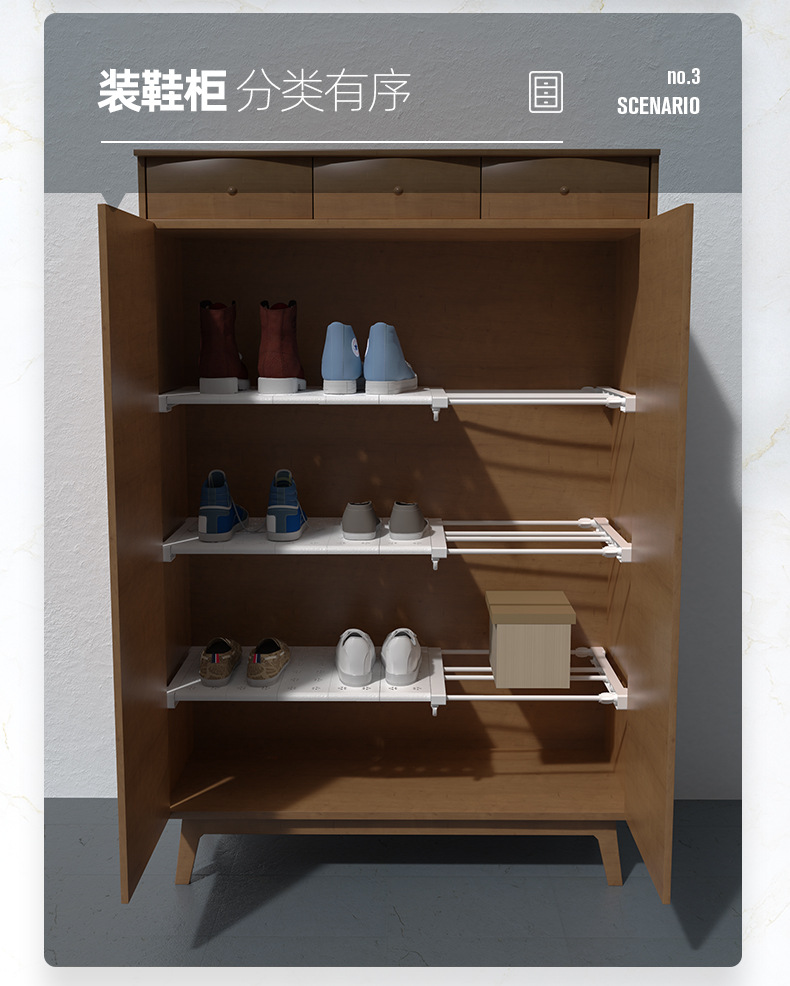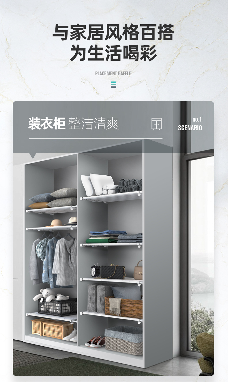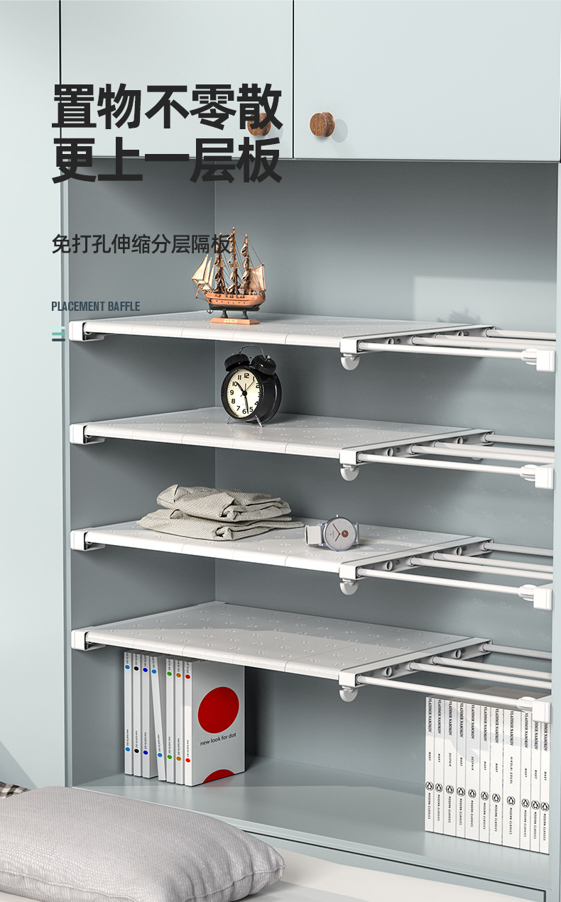 옷장 레이어드 파티션 펀치 프리 텔레스코픽 스토리지 랙 옷장 파티션 신발 캐비닛 고정 랙 기숙사 보관 유물스토어 가기