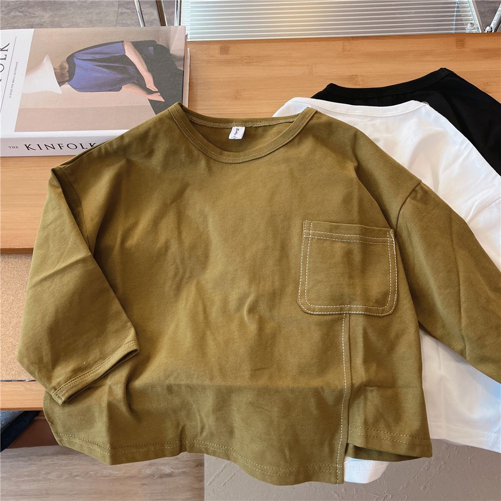 소년 긴팔 티셔츠 봄, 가을 2024 새로운 어린이 색상 불규칙한 바닥 셔츠 아기 가을 내부 탑스토어 가기